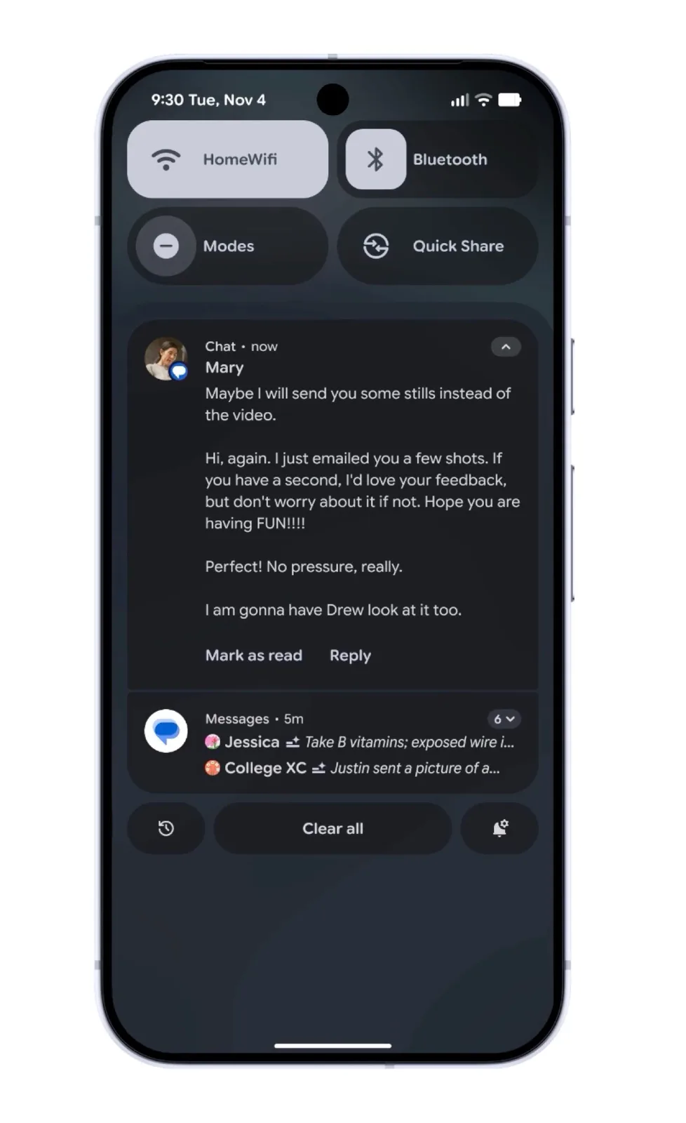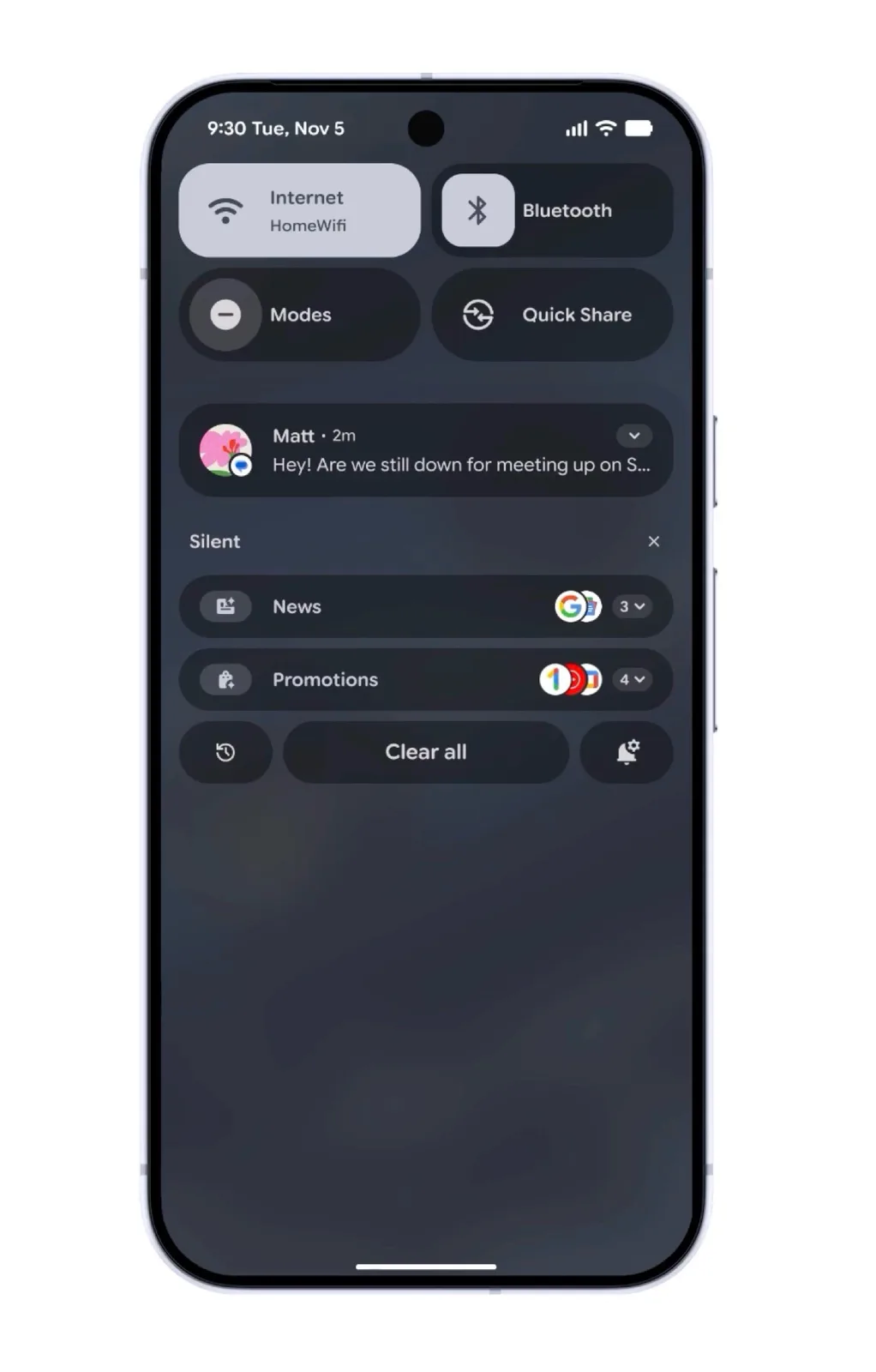 When a theme is used, the update will also apply color to icons from apps that do not support themes, as the respective icons are generated via AI. Incoming notifications can be automatically summarized by AI after the update, while low-priority messages such as ads are grouped together and shown in a smaller format.