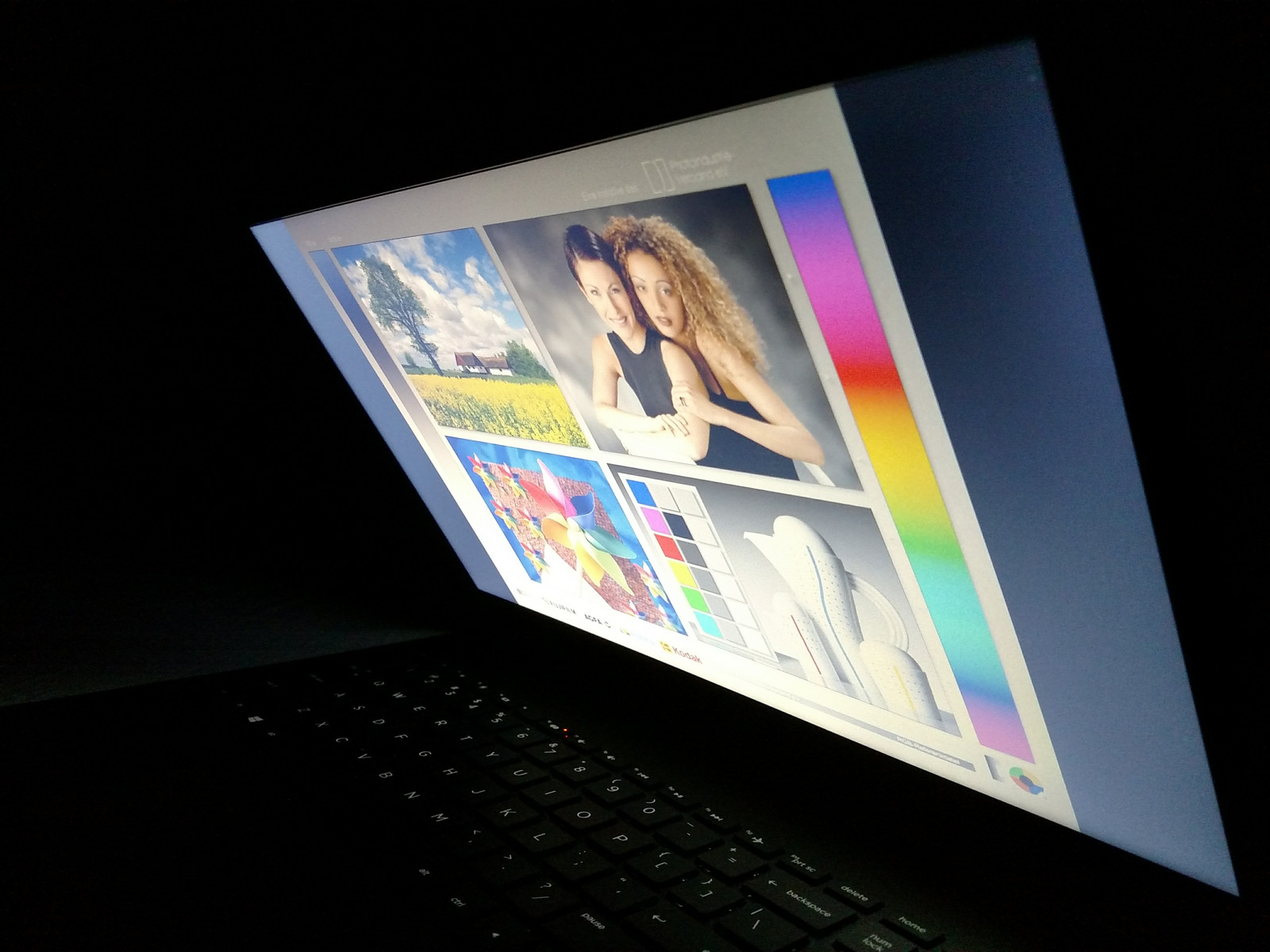 The dim screen does not get very bright, making it very difficult to use in well-lit areas and impossible to see outdoors. The glossy finish on the display adds to this problem, making reflections highly visible even at maximum brightness. PWM frequencies are also very low at 198.4 and are noticeable at all brightness levels up to 99%, so PWM-sensitive users will want to avoid this notebook.