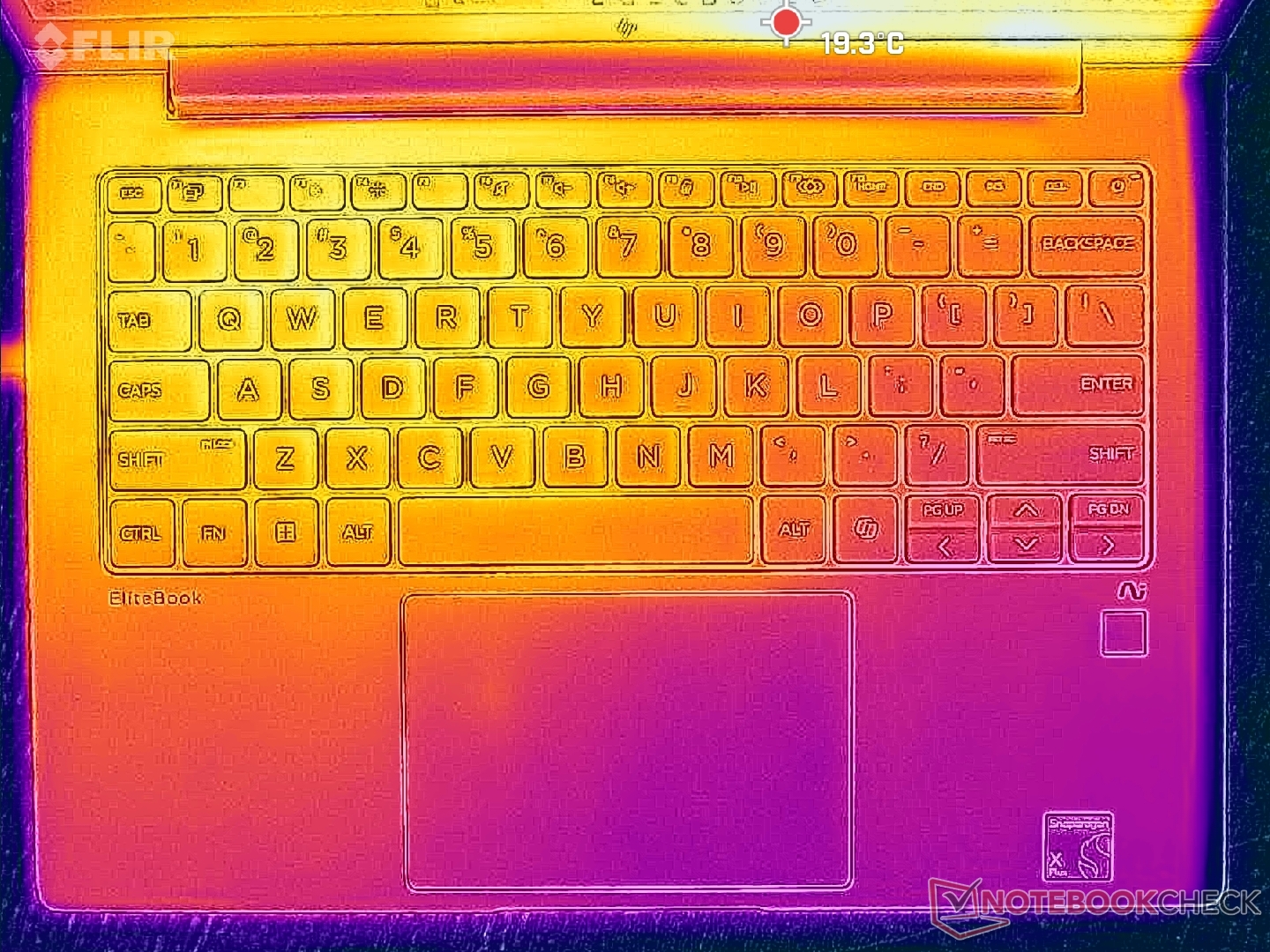 (+) The palmrests and touchpad are cooler than skin temperature with a maximum of 26.4 °C / 79.5 F and are therefore cool to the touch.