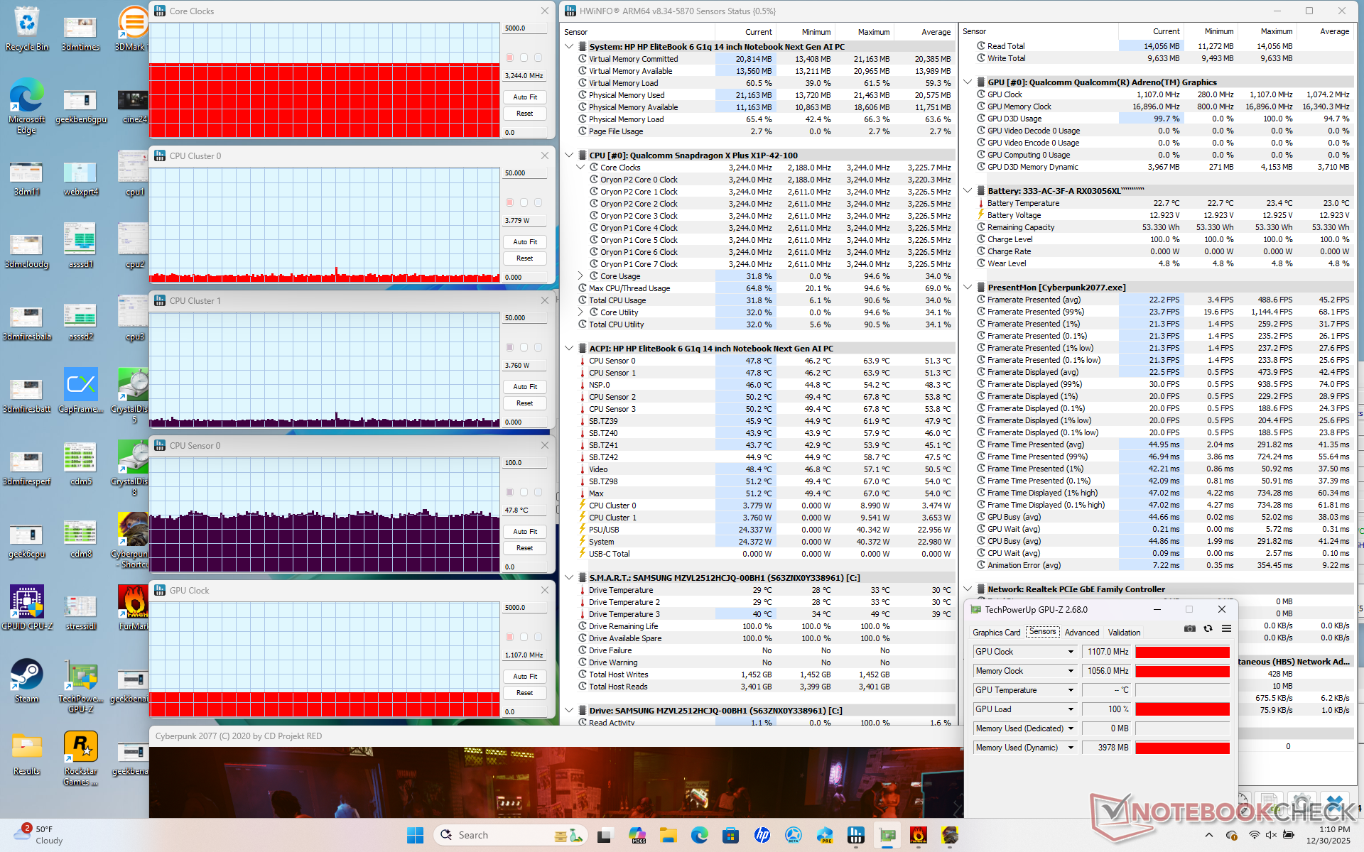 | Average CPU Clock (GHz) | GPU Clock (MHz) | Average CPU Temperature (°C) | |