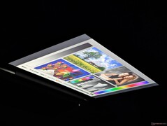 This option offers full sRGB colors albeit with relatively slow black-white response times, no factory color calibration, and only a 60 Hz refresh rate. Touchscreen options are limited to only the lower-end 300-nit panel while the super-bright panel is tied to Sure View only. For basic browsing, streaming, and amateur image editing, however, our 400-nit panel with sRGB colors is sufficient.