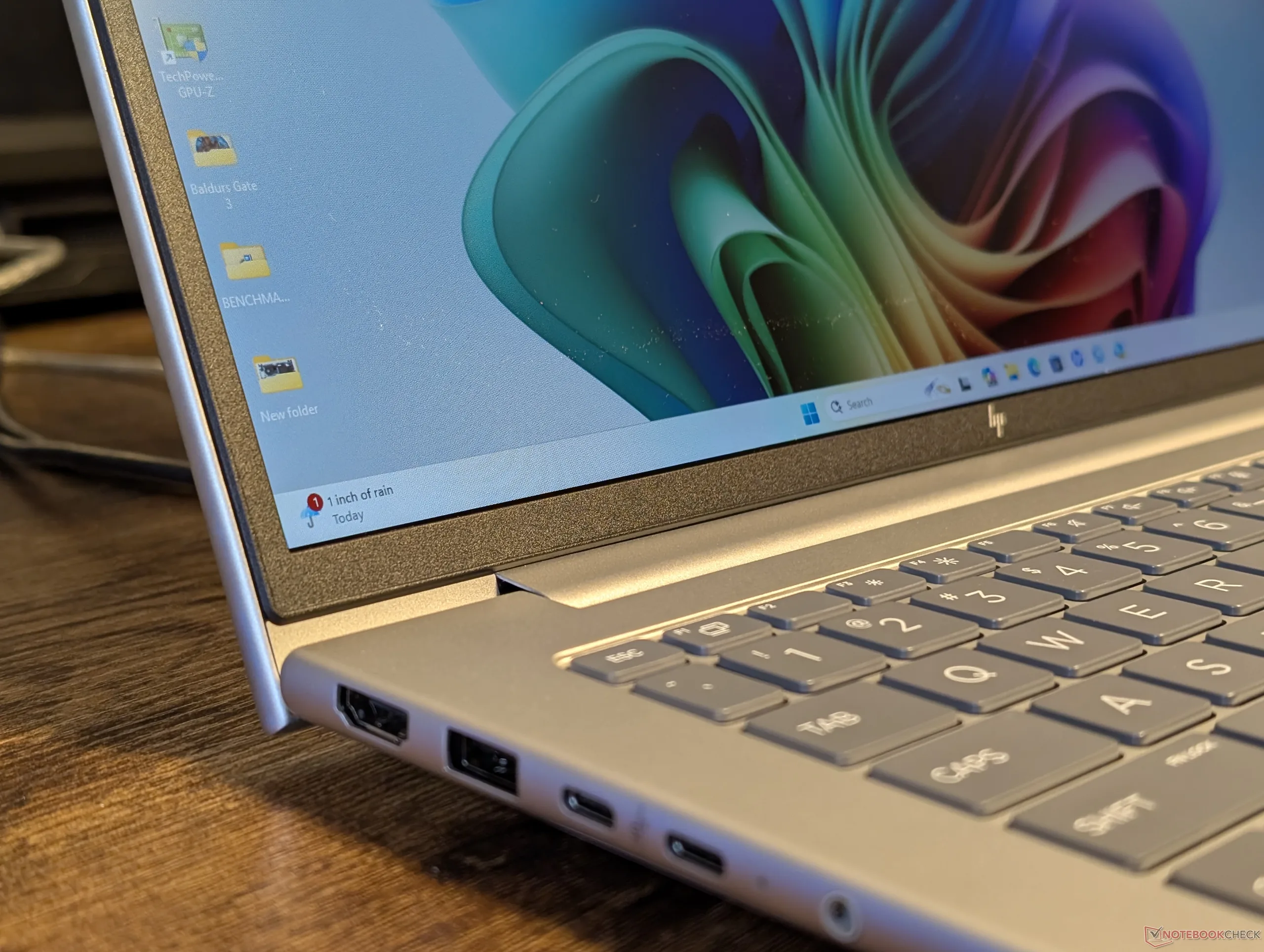 There is an impressive number of integrated ports for this entry-level EliteBook model. HDMI, RJ-45, and multiple USB-A ports are all present whereas the much pricier EliteBook Ultra G1q is missing many of these staples.