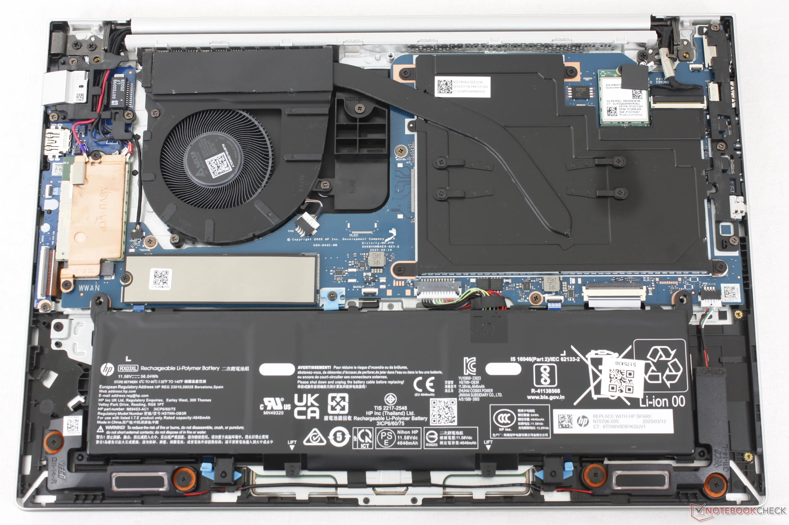 Runtimes are very long at almost 16 hours of real-world browsing from the 56 Wh battery. Configurations with a smaller and lighter 48 Wh battery are also available.