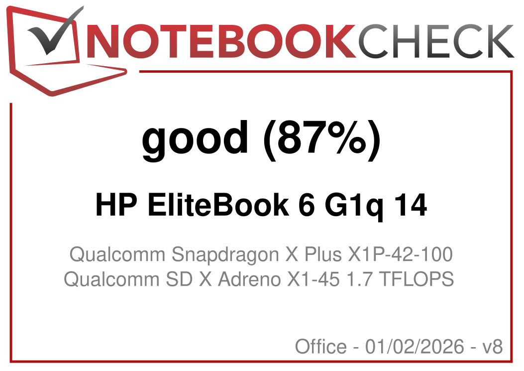 Very long battery life, quiet operation, and rich connectivity make the HP EliteBook 6 G1q 14 an attractive business notebook if running mostly ARM-native applications.