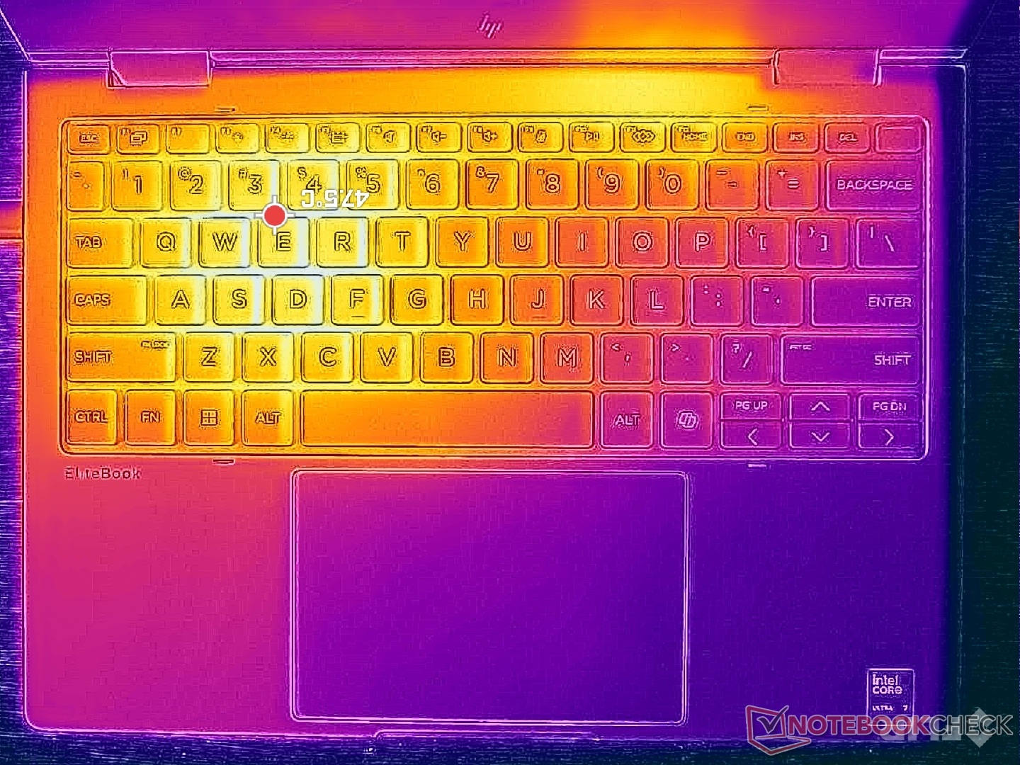 (+) The palmrests and touchpad are reaching skin temperature as a maximum (33.6 °C / 92.5 F) and are therefore not hot.