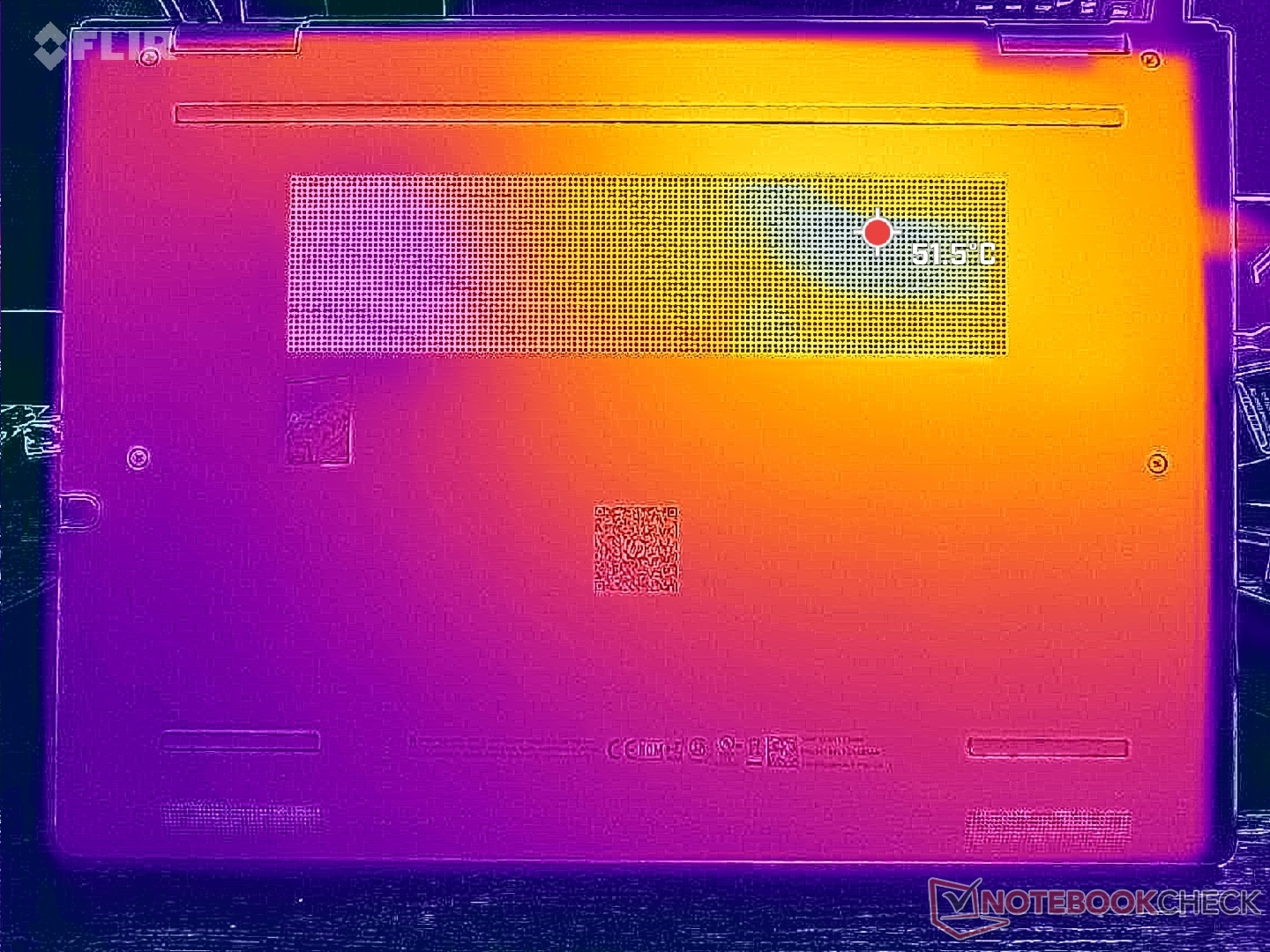 (-) The bottom heats up to a maximum of 51 °C / 124 F, compared to the average of 36.8 °C / 98 F