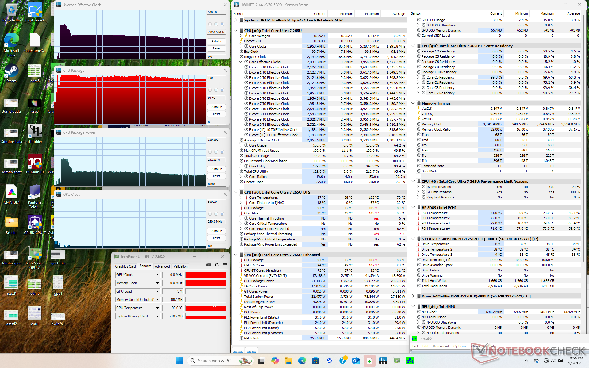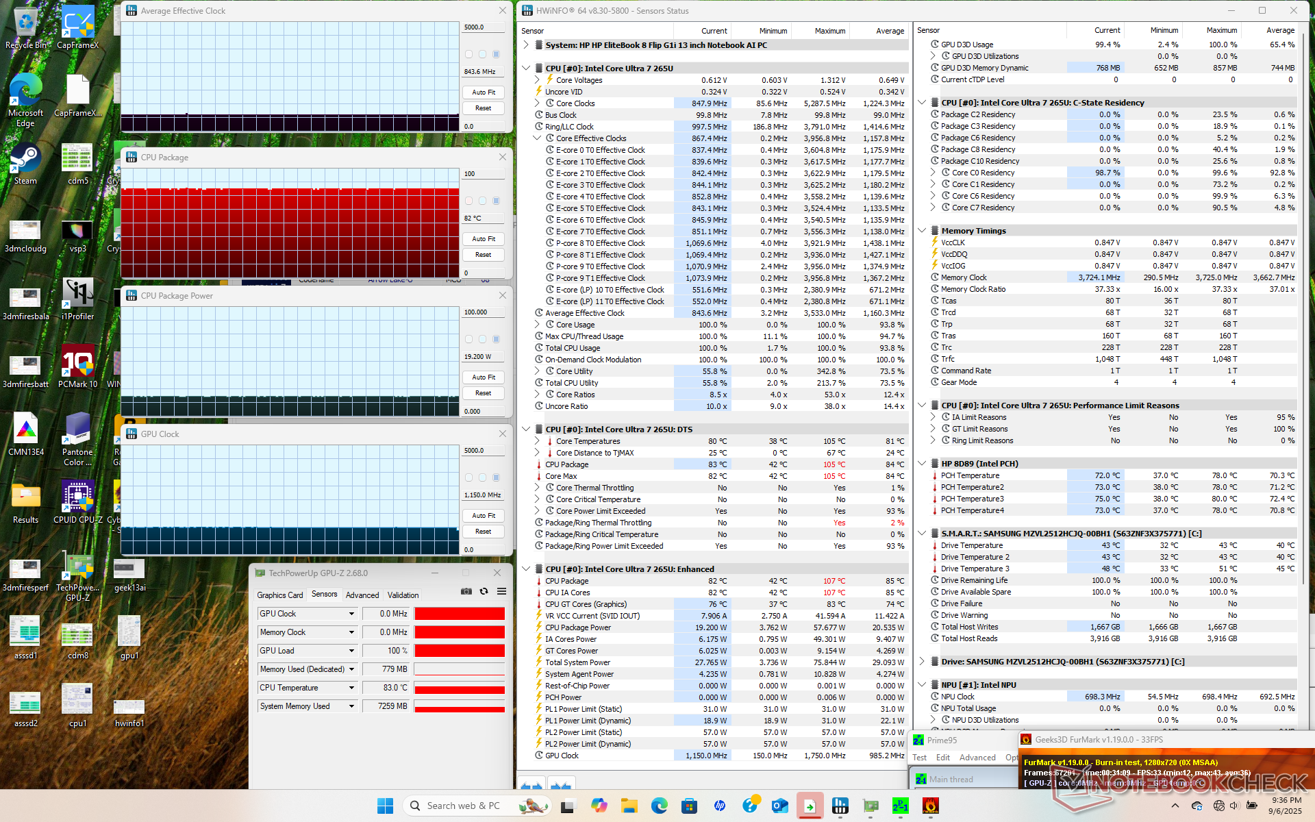 A key setback to the new model is its lack of display options as all current configurations are limited to 1200p IPS and 60 Hz. Users who demand P3 colors, OLED, HDR support or a smoother GUI will therefore have to consider higher-end models from the EliteBook Ultra or EliteBook X series. The Arc 4 GPU, while decent for a 13-inch convertible, is also on the weaker side when compared to other integrated solutions like the Arc 140T or Radeon 800M/900M series. Furthermore, the included stylus pen is thinner or narrower than the stylus pen for the Surface tablet to be more difficult to grip. The SSD throttling and relatively high core temperatures may suggest that the small cooling solution could use an upgrade down the line.
