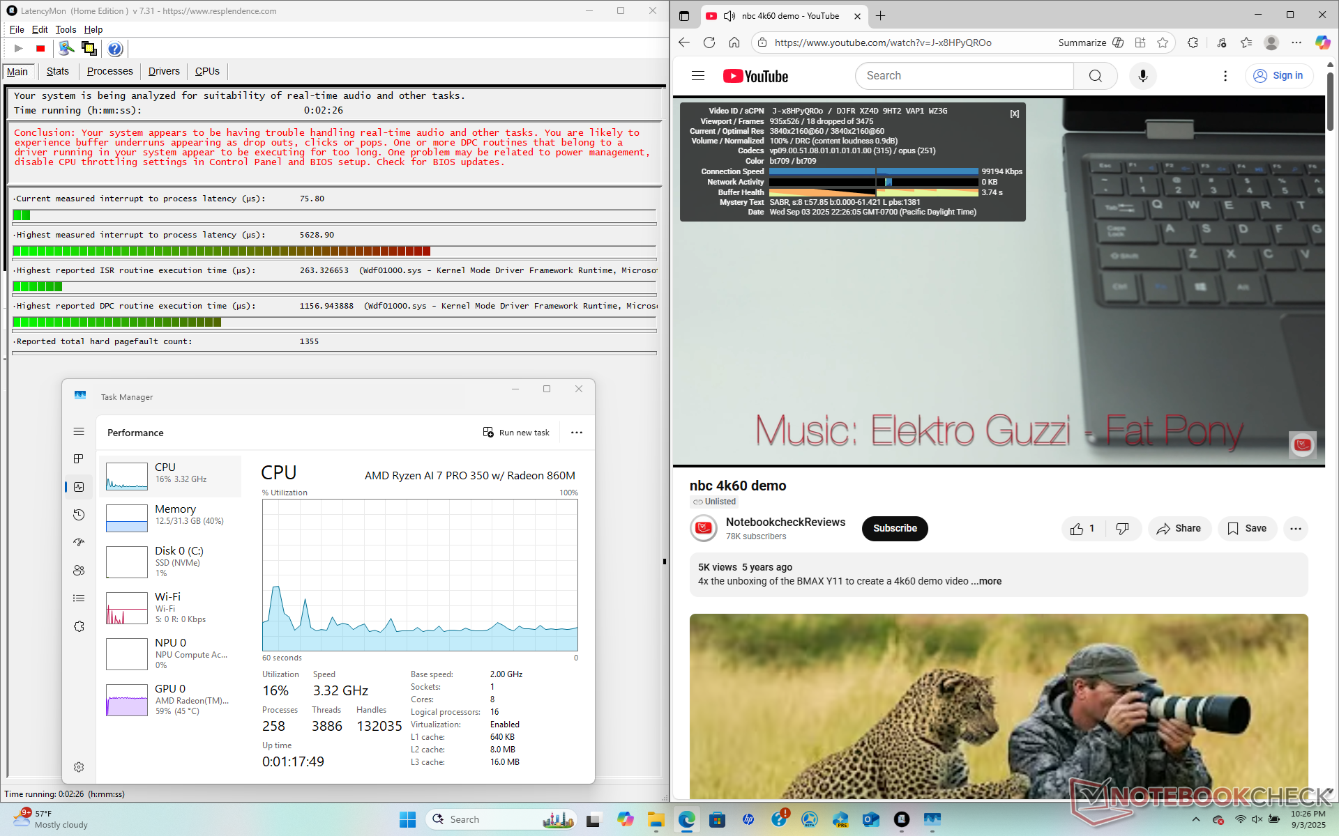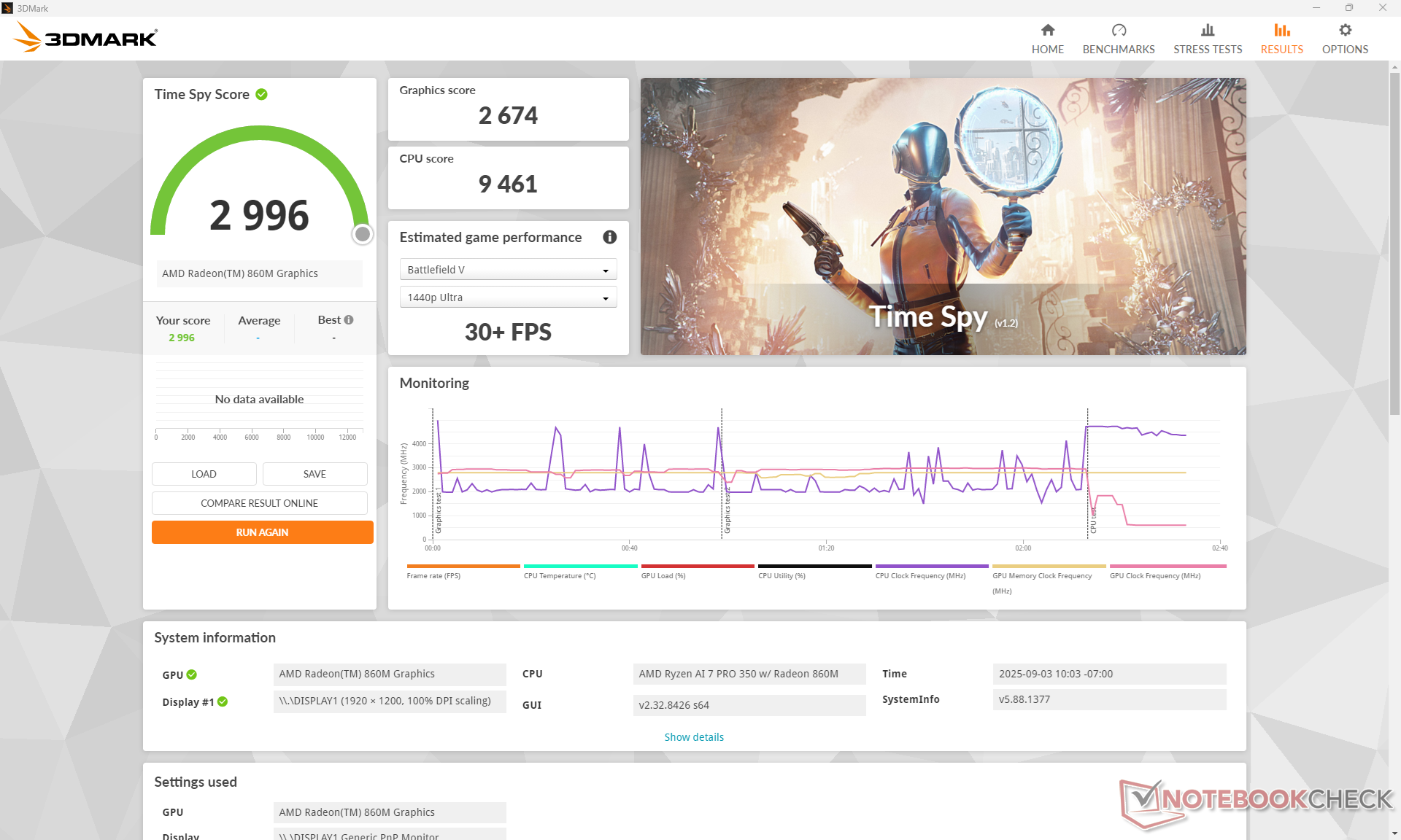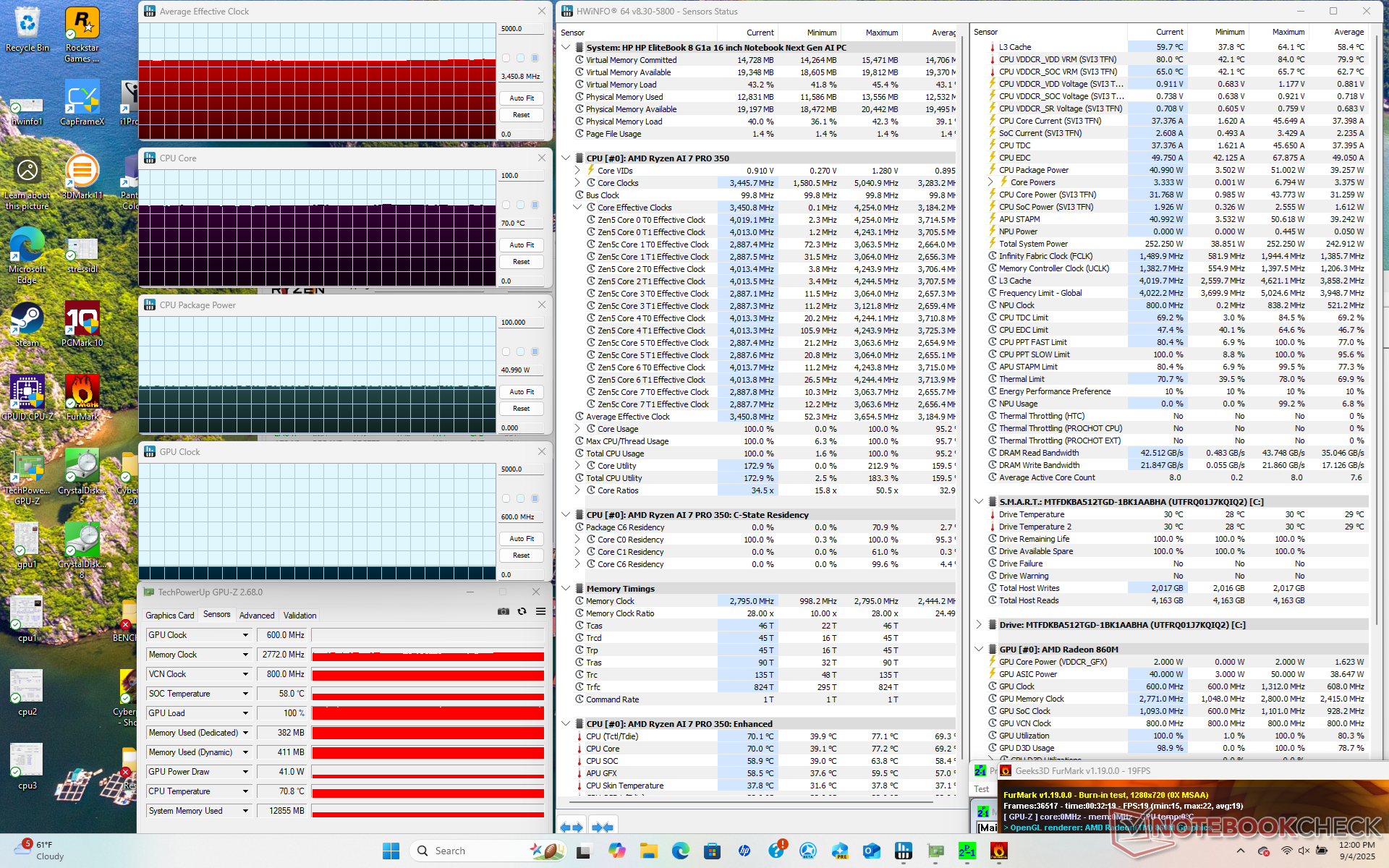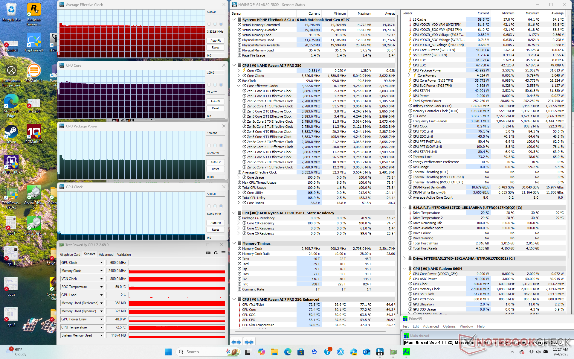 The Ryzen AI 7 PRO 350 offers comparable multi-thread performance to the Ryzen 9 PRO 7940HS or competing Core Ultra 5 225H/Core Ultra 7 255H series. Most notably, it easily outperforms any U-series or V-series laptops like the Lenovo ThinkPad L16 or Acer Swift 16 AI. Performance sustainability is also excellent with no major throttling issues when stressed.