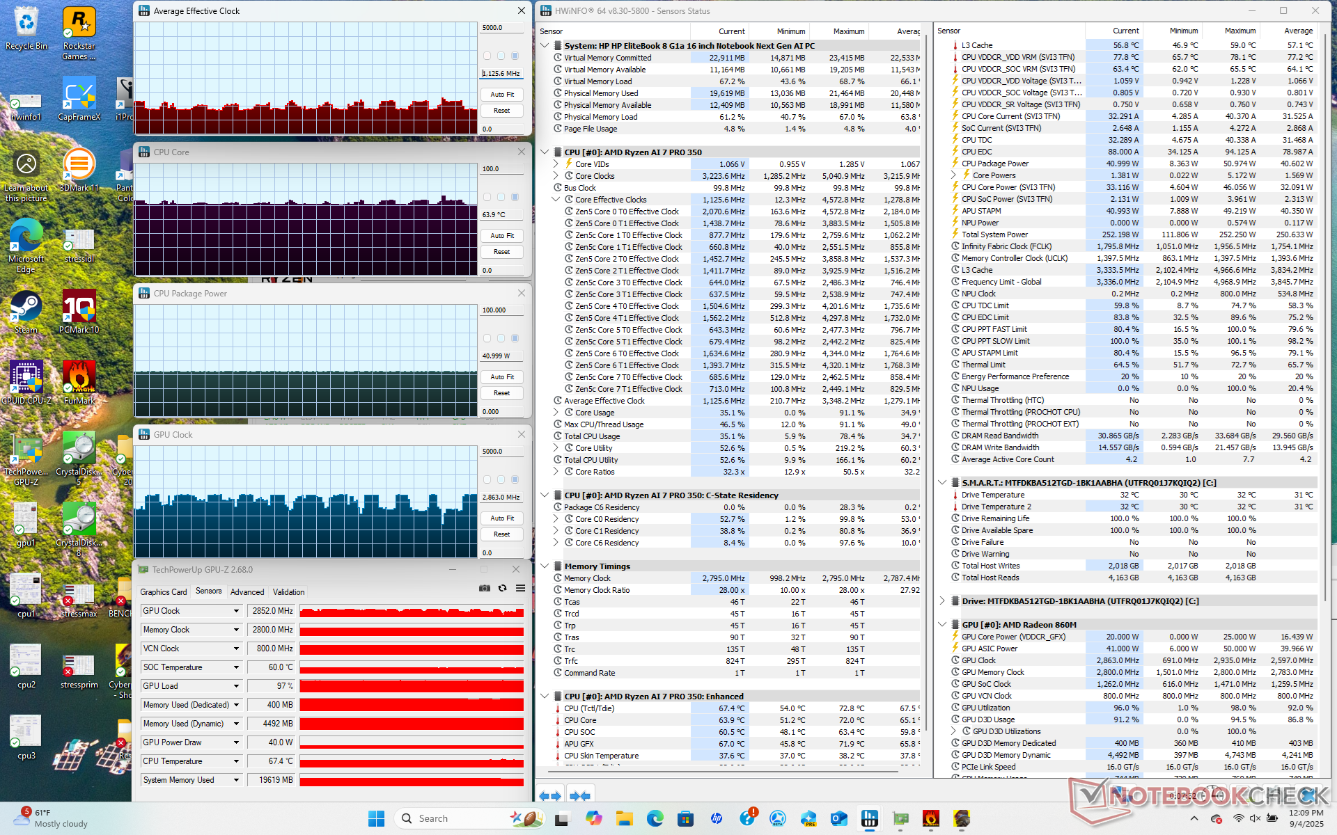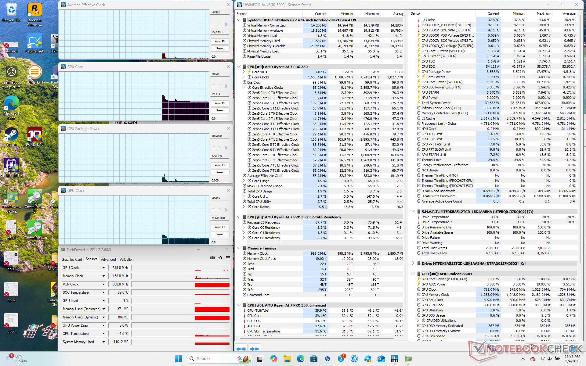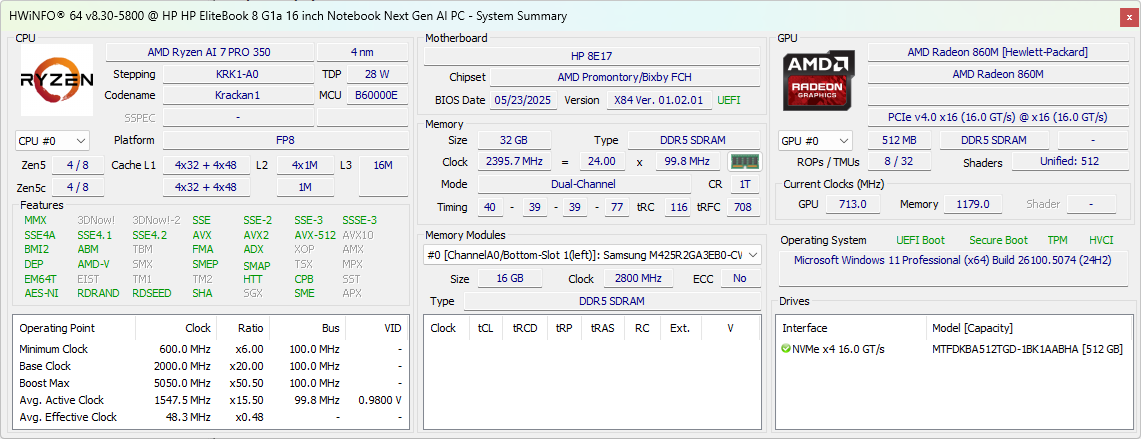 | HP EliteBook 8 G1a 16 AI AMD Ryzen AI 7 PRO 350 ⎘ AMD Radeon 860M ⎘ 32 GB Memory, 512 GB SSD | Amazon: $1,766.99 List Price: 4400 USD | 1.9 kg | 15.5 mm | 16.00" 1920x1200 142 PPI IPS | |