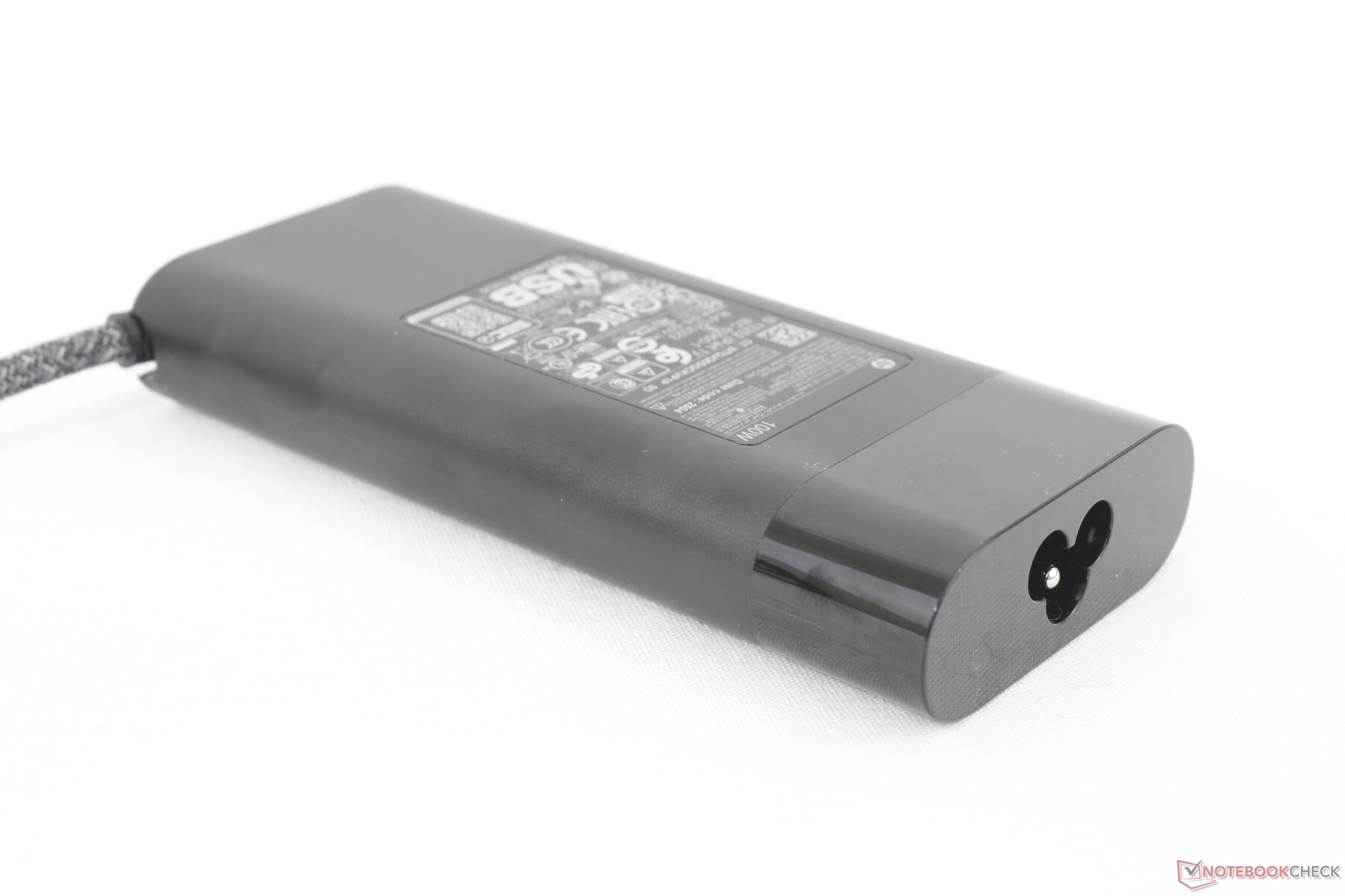 We're able to record a temporary maximum draw of around 80 W from the small (~13.5 x 6 x 2.3 cm) 100 W USB-C AC adapter when the CPU is at 100 percent utilization.