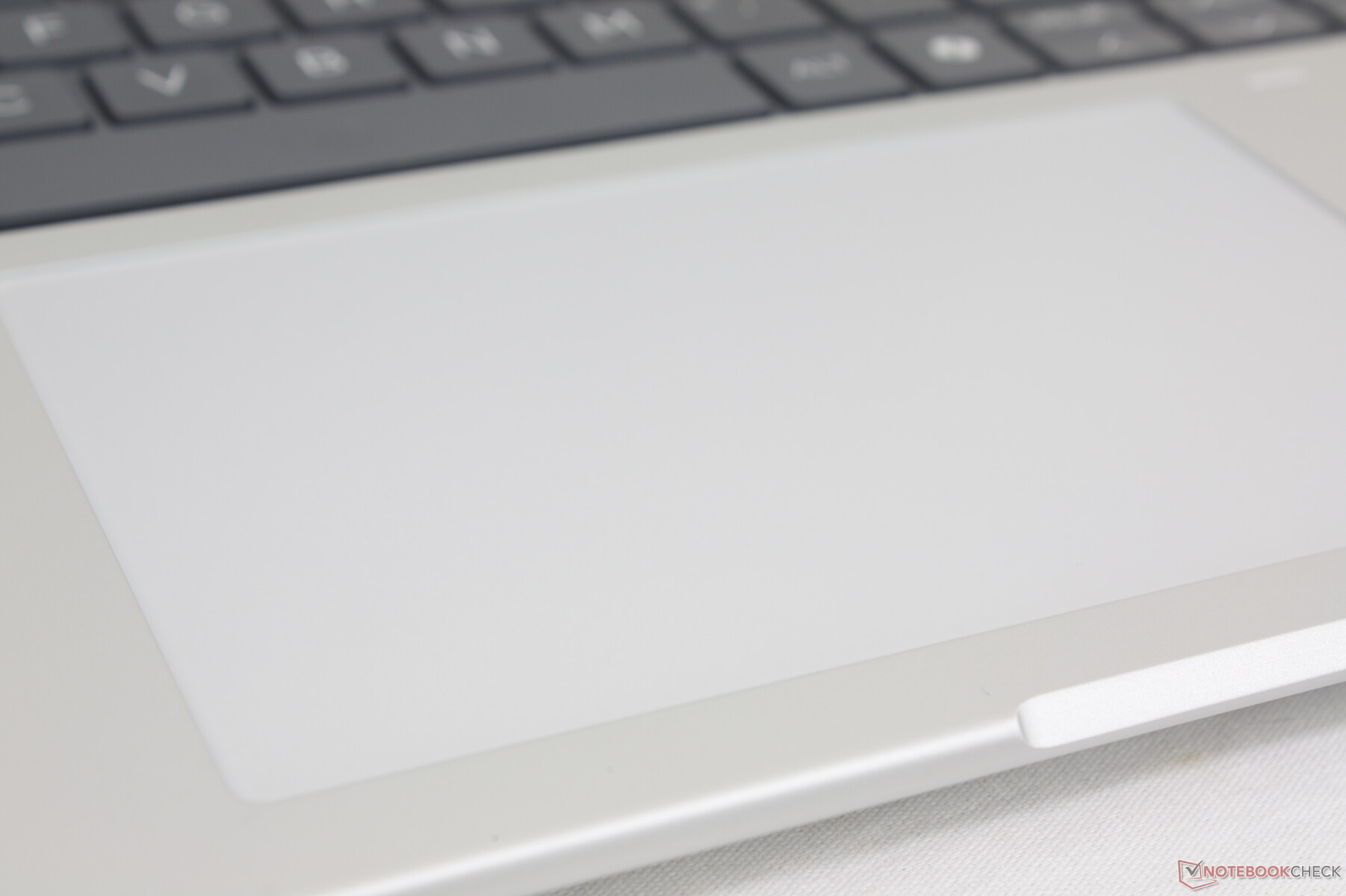 The clickpad is larger than the one on the older EliteBook 865 G10 (13.5 x 8.6 cm vs. 12.7 x 8.5 cm) while maintaining the relatively clicky feedback and smooth surface area of the former model. Drag and drop actions are nonetheless not as accurate as laptops with dedicated mouse buttons like the Lenovo ThinkPad L16.