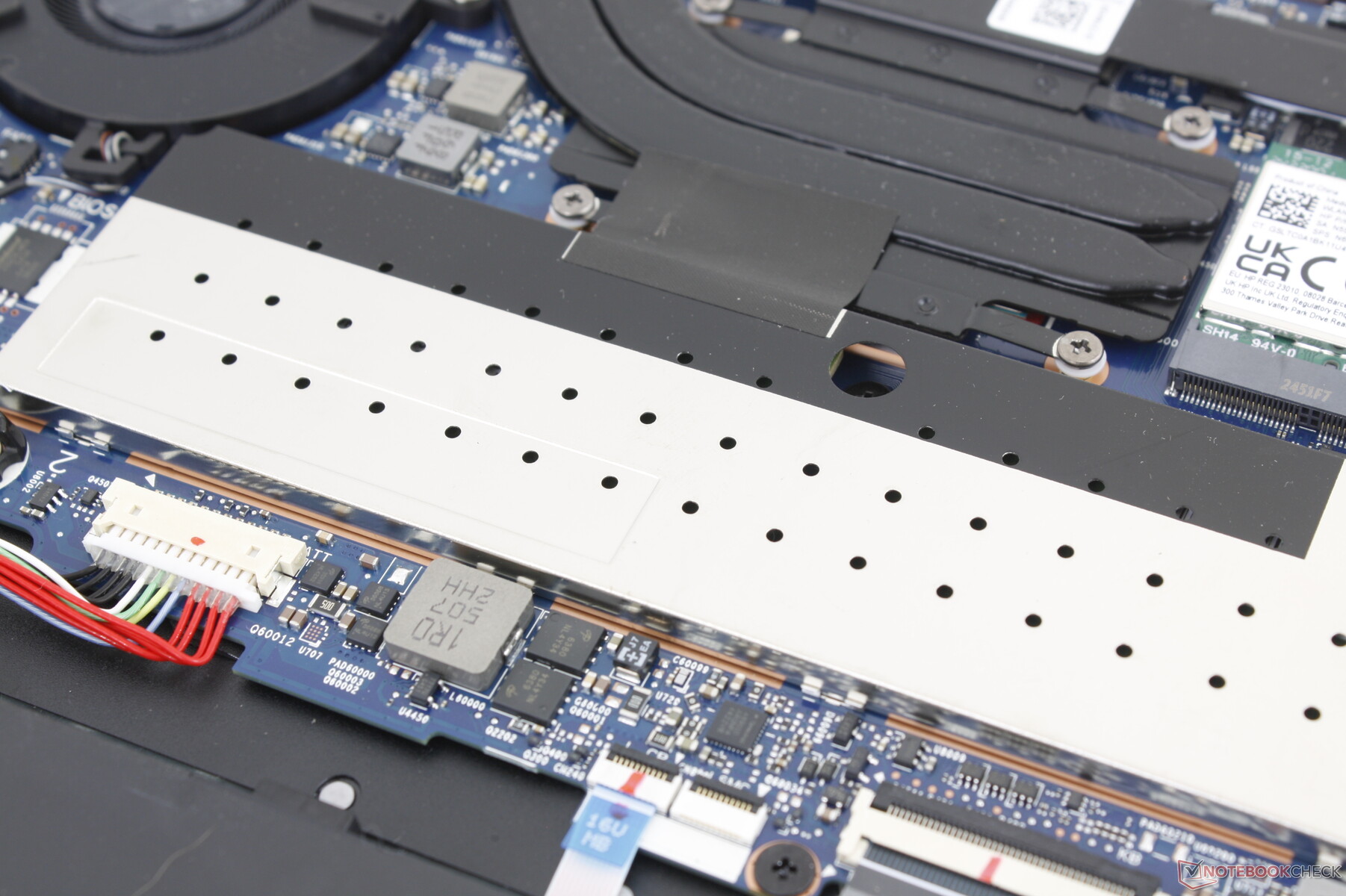 The bottom panel is secured by just four Phillips screws for easy servicing as any good business laptop should be. While RAM is upgradeable via two SODIMM slots, storage is unfortunately limited to a single M.2 2280 slot despite the large 16-inch form factor. The WAN antenna are not included if configuring without a WAN module.