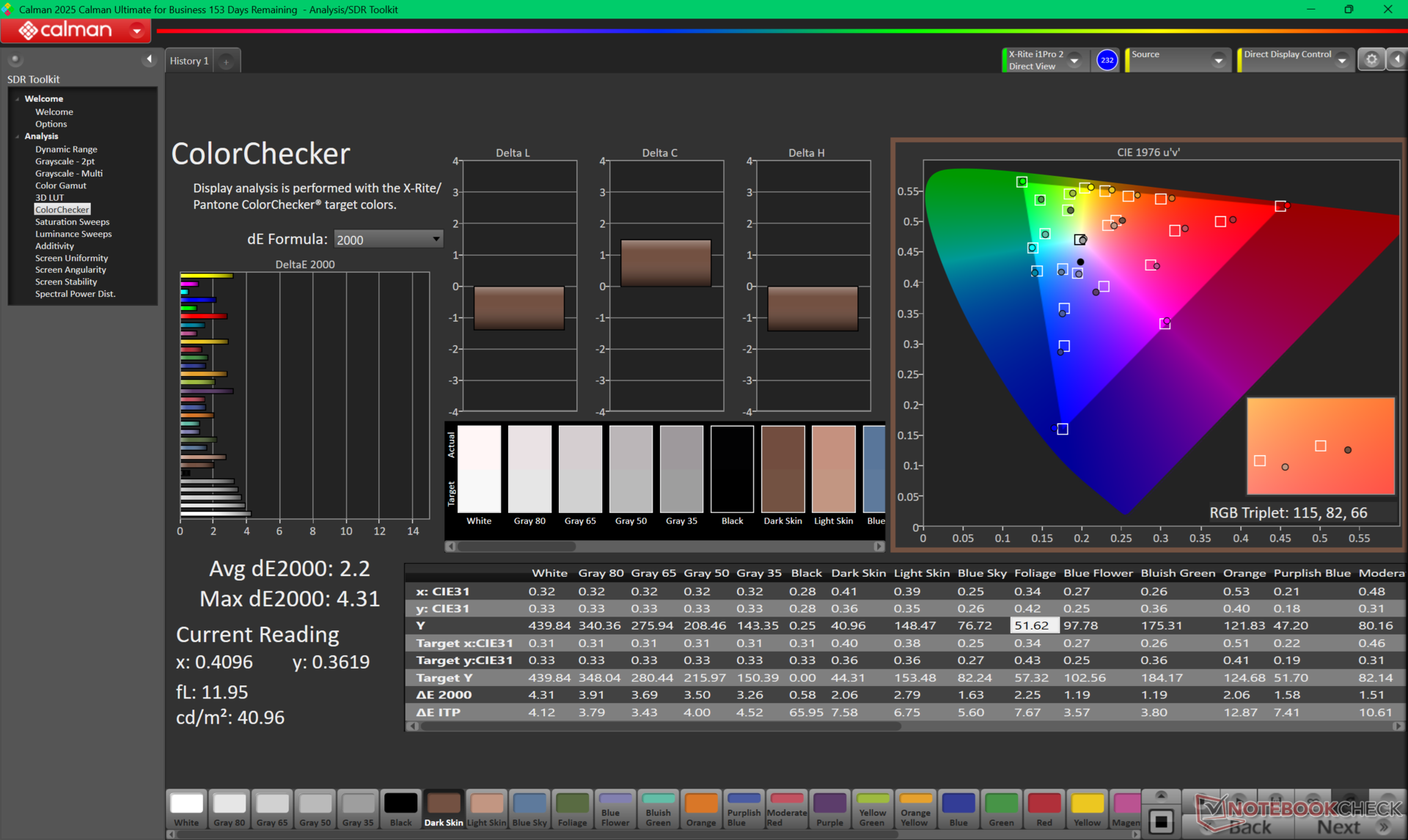 ΔE ColorChecker Calman: 2.2 | ∀{0.5-29.43 Ø4.79}