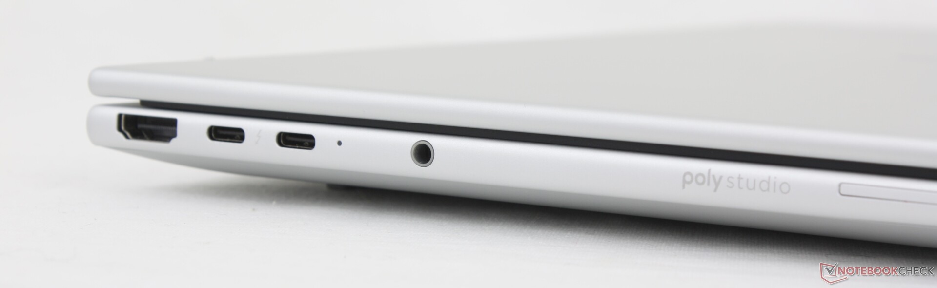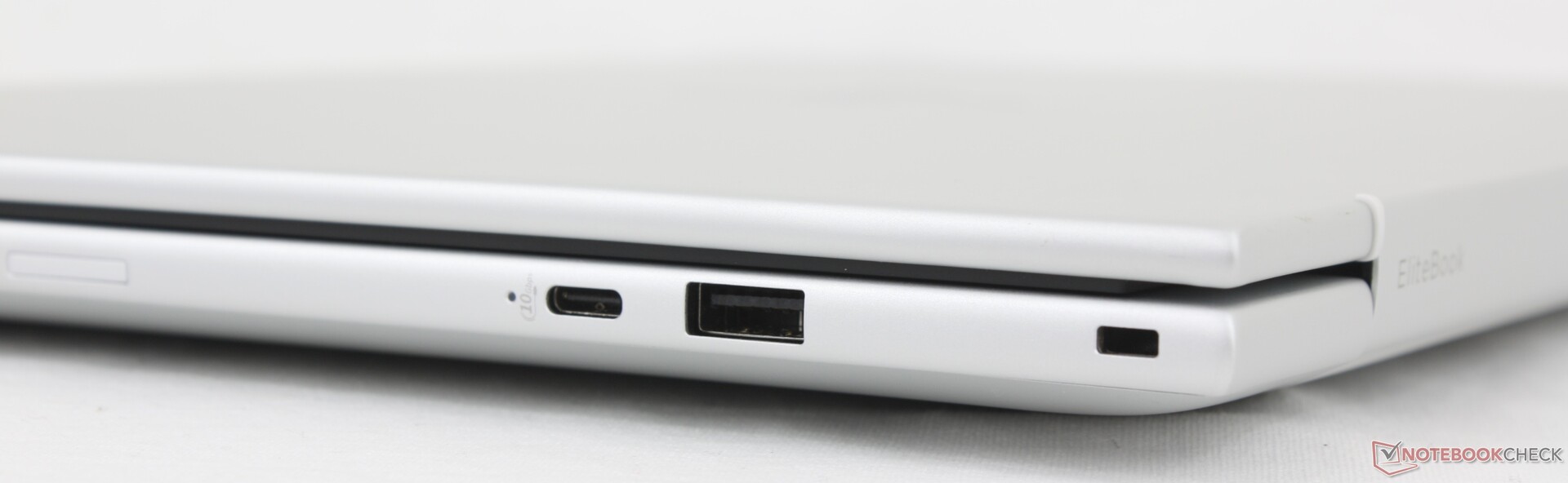 When compared to last year's EliteBook 865 G10, the EliteBook 8 G1a 16 trades away one USB-A port for a third USB-C port. This is arguably an improvement as the model utilizes USB-C for charging meaning that users now have two free USB-C ports when docked instead of just one. Keep in mind that only the two USB-C ports along the left edge support Thunderbolt 4 devices while the third USB-C port along the right is limited to 10 Gbps.