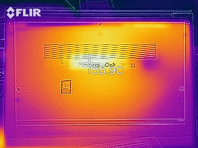 (±) The palmrests and touchpad can get very hot to the touch with a maximum of 37.2 °C / 99 F.