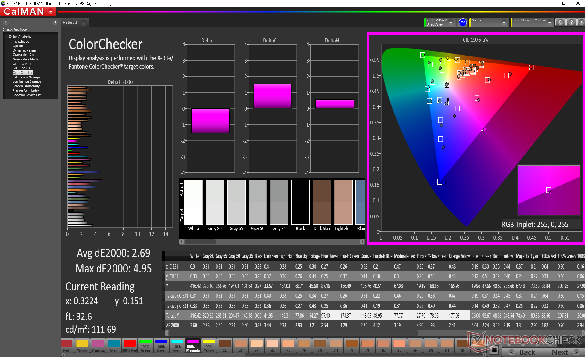 ΔE ColorChecker Calman: 2.69 | ∀{0.5-29.43 Ø4.78}