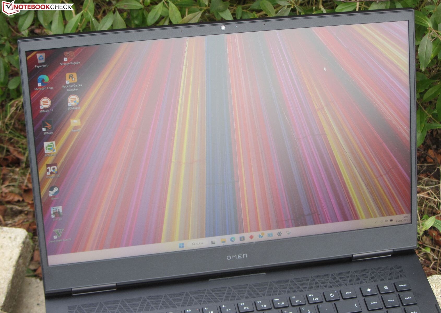 The matte 17.3-inch display (QHD, IPS, 165 Hz, sRGB) leaves a solid impression. It performs slightly better overall than the FHD panel of the similarly constructed Omen predecessor but worse than most of the competitors. A Thunderbolt 4 connection offers some expansion options (docking solution, external GPU). In addition, it can also be used for charging the battery with a USB-C charger (min. 65 watts, 20 V), and Power Delivery is supported.