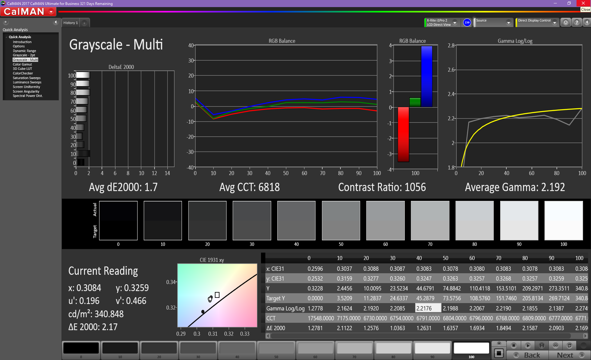 ΔE Greyscale Calman: 2.4 | ∀{0.09-98 Ø5}