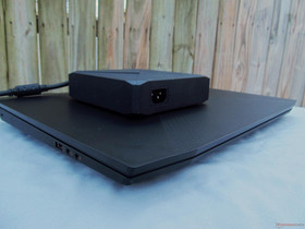 Speaking of the power supply, the Omen-branded brick is very large. Its square design makes it almost the size of a small desktop computer (150 x 150 x 38 mm, or 5.9 x 5.9 x 1.5 in) and thicker than the notebook itself. This hampers the portability of the system.
