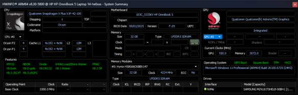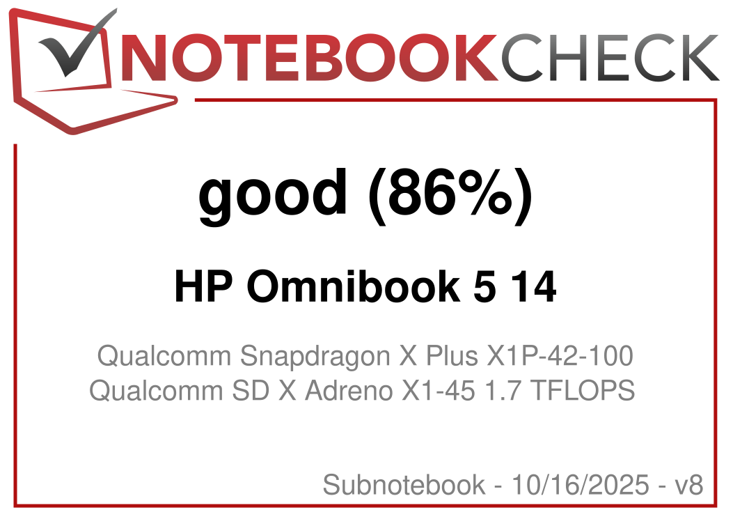 HP Omnibook 5 14 Qualcomm Snapdragon X Plus X1P-42-100 ⎘ Qualcomm SD X Adreno X1-45 1.7 TFLOPS ⎘ 16 GB Memory, 1024 GB SSD | Amazon: $579.99 List Price: 550 USD | 1.3 kg | 12.7 mm | 14.00" 1920x1200 162 PPI OLED | |