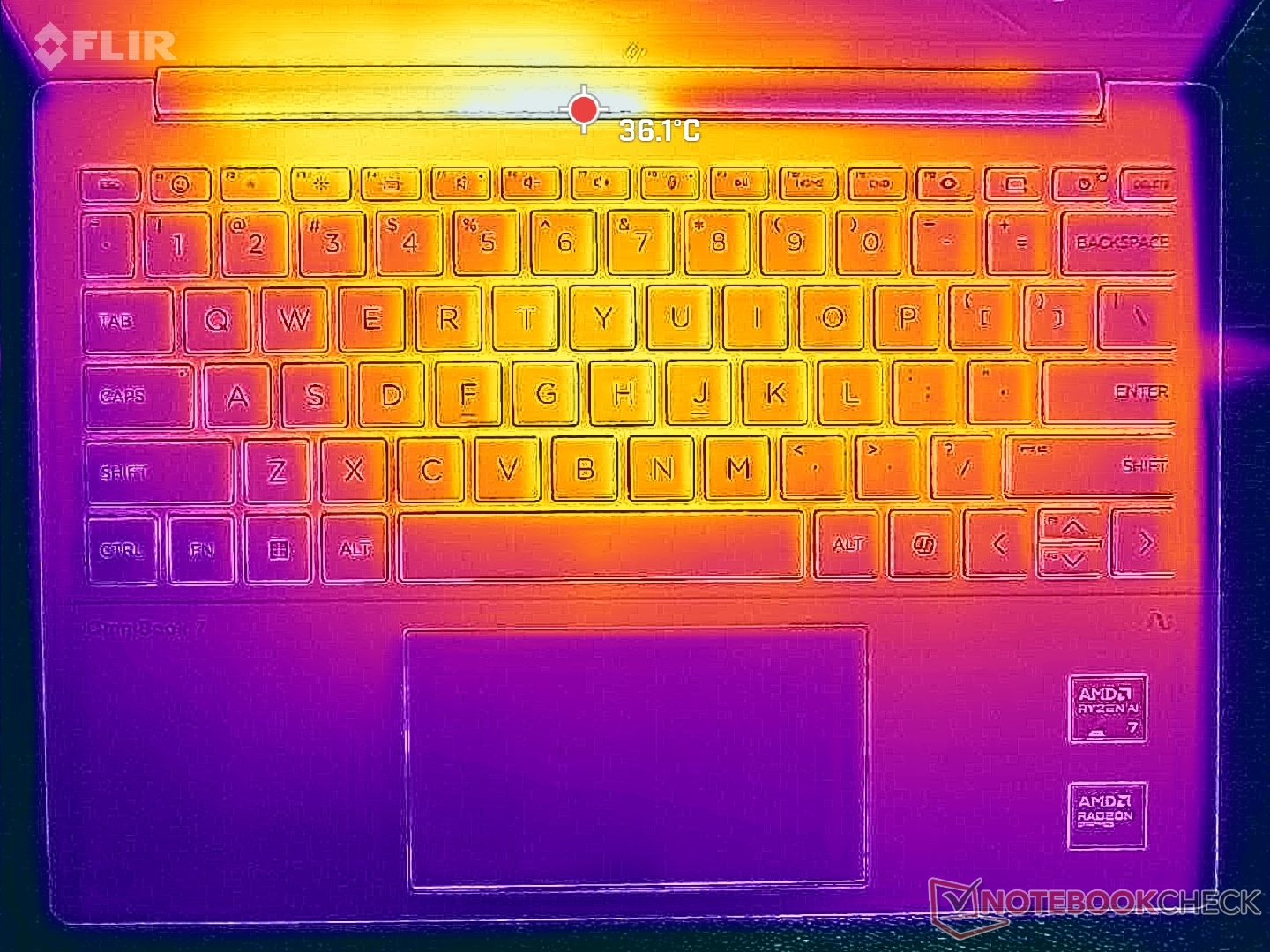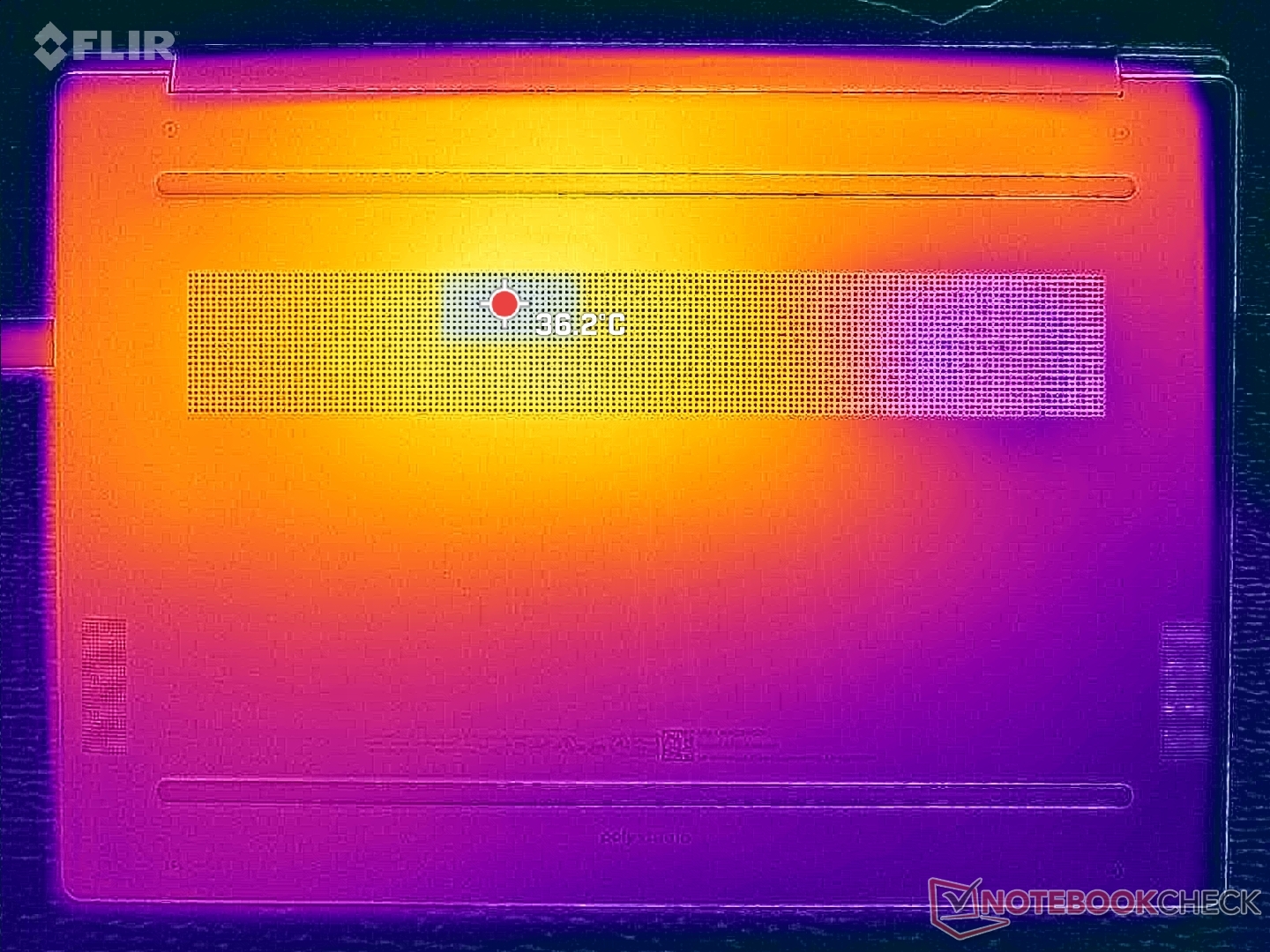 (+) The maximum temperature on the upper side is 35.8 °C / 96 F, compared to the average of 35.9 °C / 97 F, ranging from 21.4 to 59 °C for the class Subnotebook.