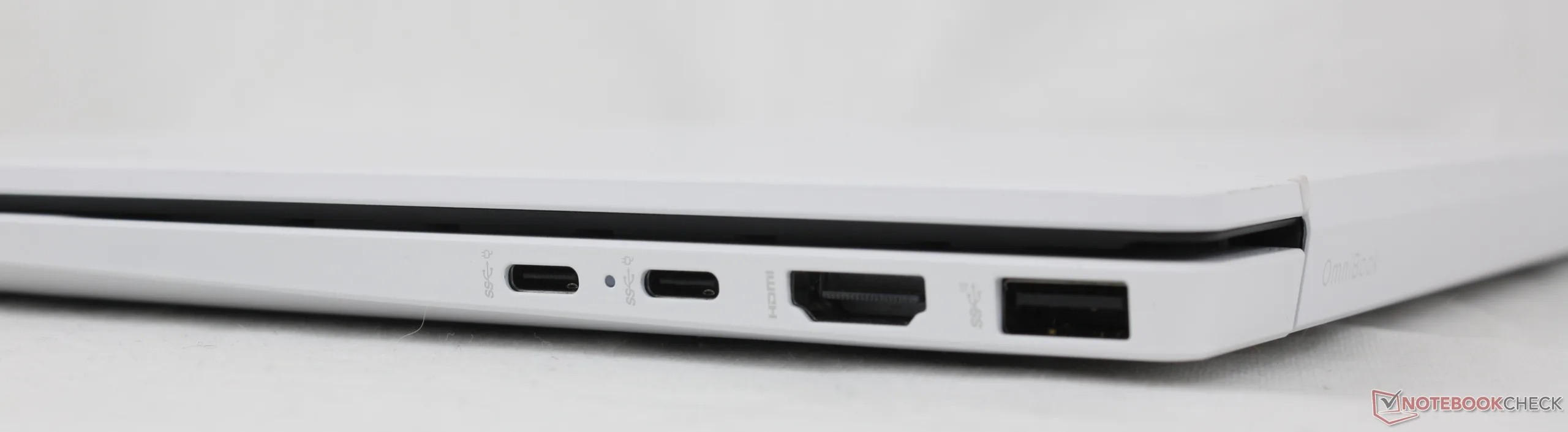 There are a fair number of integrated ports despite the very low weight. In fact, the HP offers more ports than on the ZenBook S13. The only downside is that the USB-C ports are not Thunderbolt compatible and so the docking capabilities of the OmniBook 7 Aero 13 are not as strong as most Intel-powered Ultrabooks.