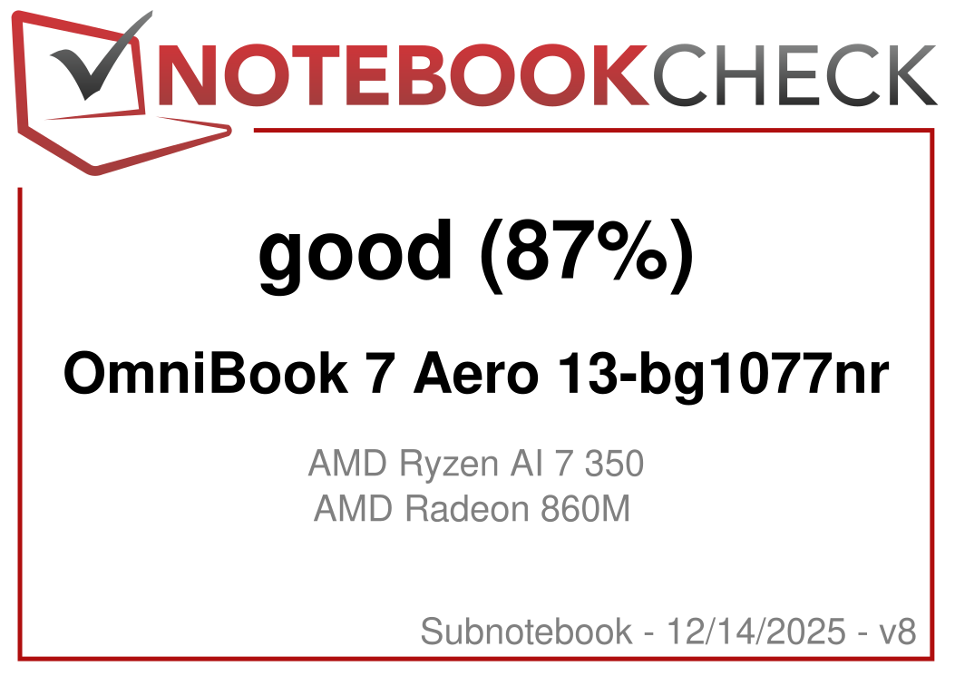 The HP OmniBook 7 Aero 13 manages to avoid a lot of the pitfalls that plague many other ultralight 1 kg laptops. Processor performance, battery life, port options, and chassis rigidity are all better than expected for the weight for a higher sense of quality. The hardware is much closer to a professional EliteBook laptop than it is to a cheaper Pavilion option. We particularly appreciate the quiet fan noise, full sRGB colors as standard and relatively easy servicing which isn't something we can say for most subnotebooks.