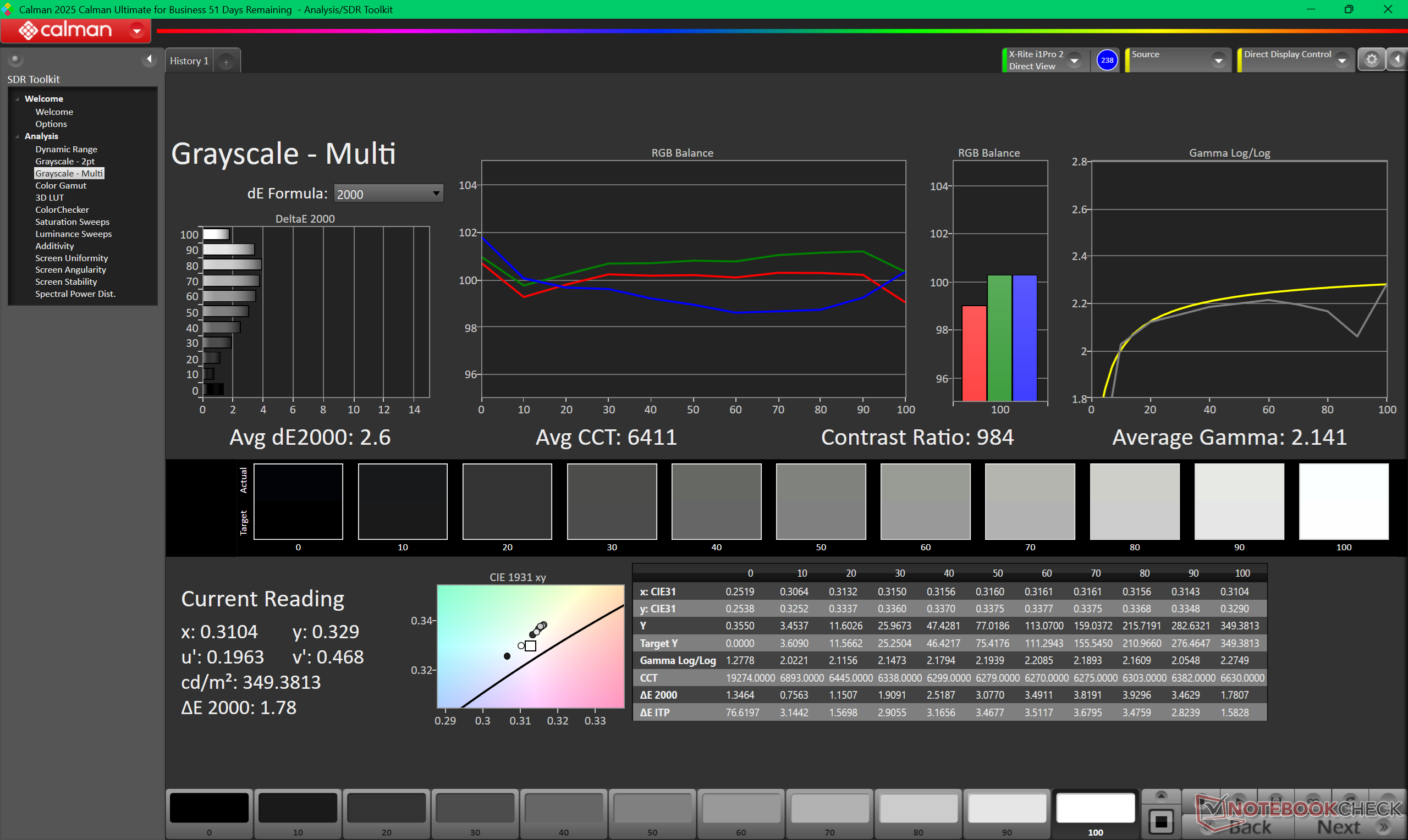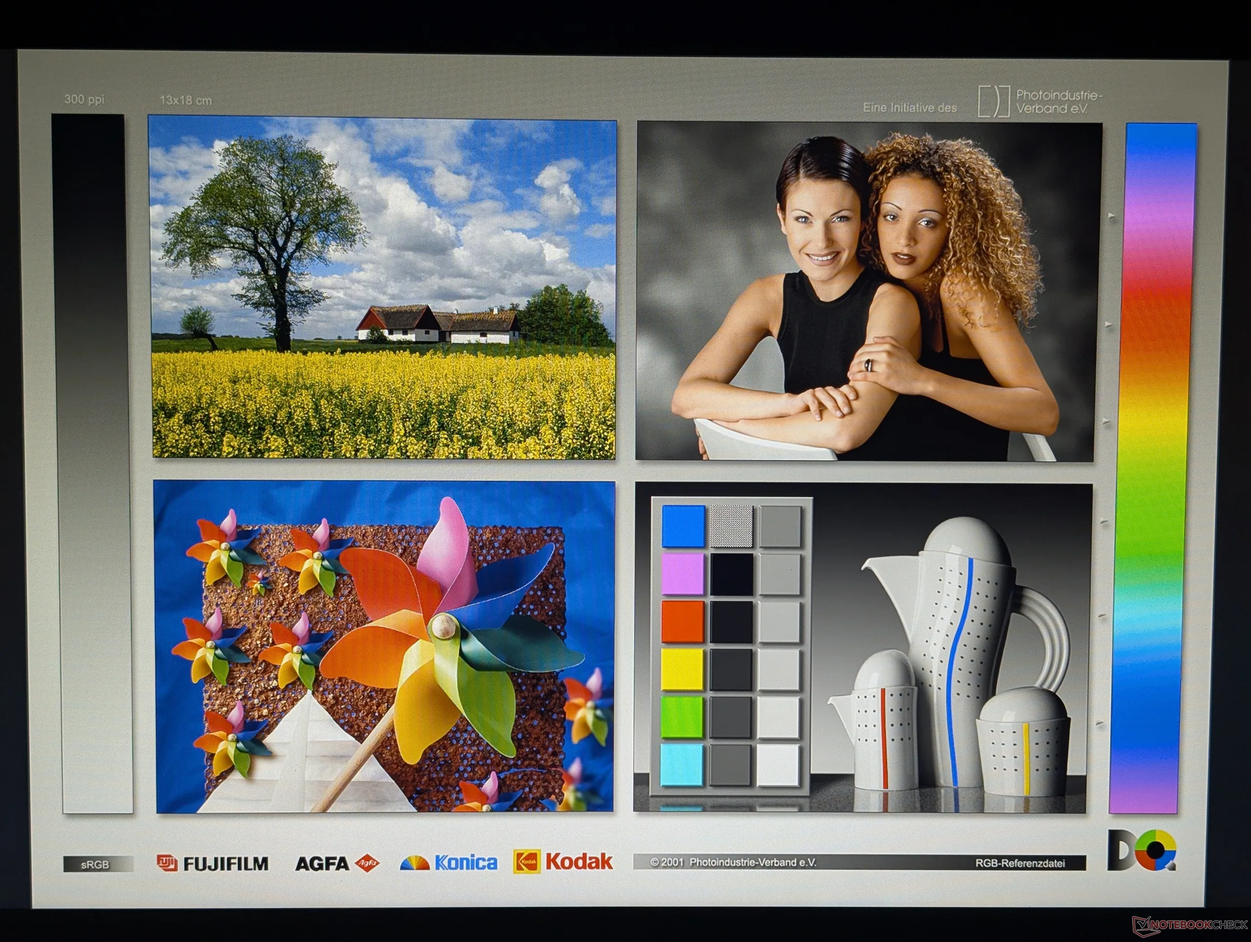 The display doesn't come pre calibrated, but average deltaE values are nonetheless lower than expected at just 2.6 and 5.87 for grayscale and colors, respectively. Users can apply our calibrated ICM profile above for better sRGB accuracy.