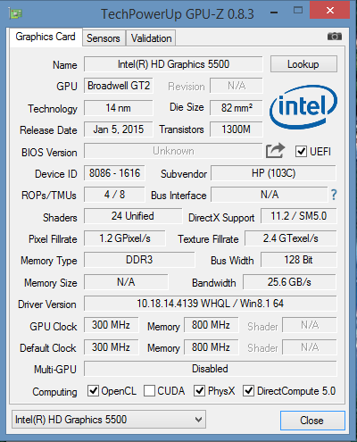 The GeForce core can be used in combination with Intel's HD Graphics 5500 GPU. Nvidia’s GPU handles more complex applications like games, while the Intel core is used for simpler tasks and on battery power. The switching happens automatically and the user does not have to intervene.