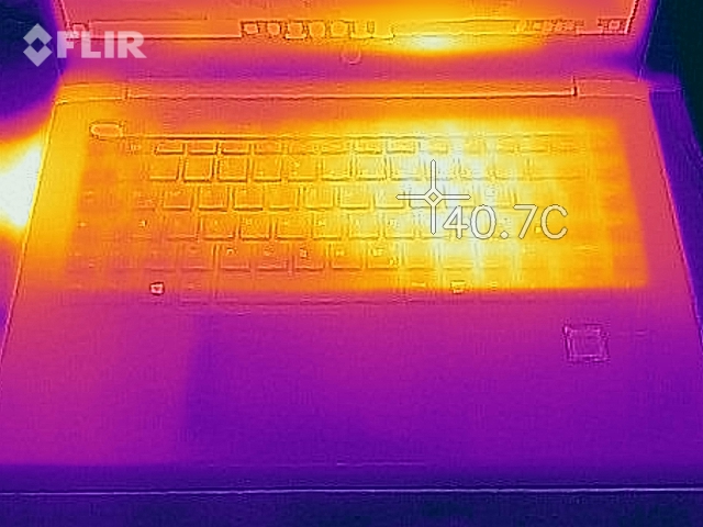 (+) The palmrests and touchpad are cooler than skin temperature with a maximum of 24.5 °C / 76.1 F and are therefore cool to the touch.