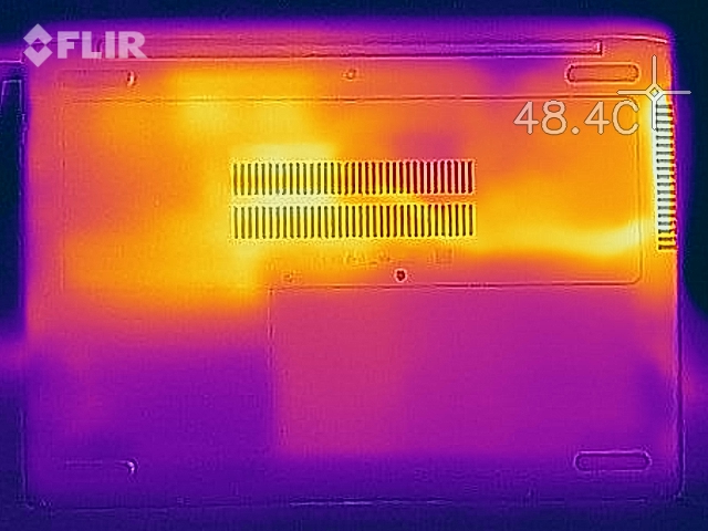 (-) The bottom heats up to a maximum of 45.5 °C / 114 F, compared to the average of 36.8 °C / 98 F