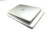 HP has given this year's ProBook 400 series a new design. The previous generation, the ProBook 400 G4, was mainly silver. The new models are still silver on the outside, but the inside is mainly black, which makes the device look more professional. The shape is similar to last year's version, although it has become a little more angular. A big change is the hinge design: Instead of two small drop-down hinges, the ProBook is now equipped with a larger, wider hinge of the same build. The single hinge has a silver cap and keeps the display in place while being loose enough to enable opening the display with one hand. The opening angle is limited to 135 °, which can be bothersome sometimes.