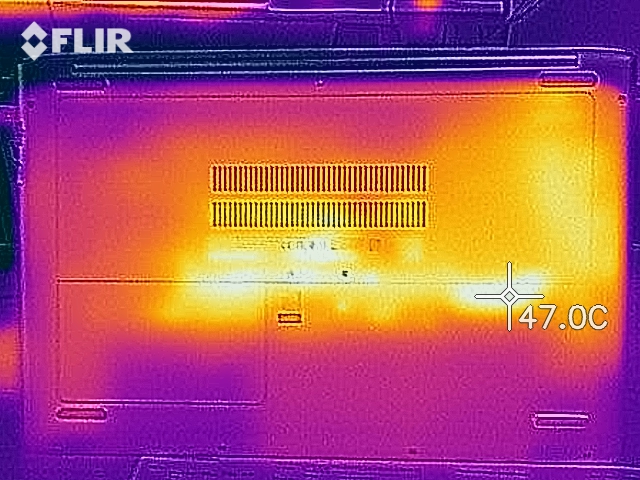 (+) The palmrests and touchpad are cooler than skin temperature with a maximum of 26.3 °C / 79.3 F and are therefore cool to the touch.