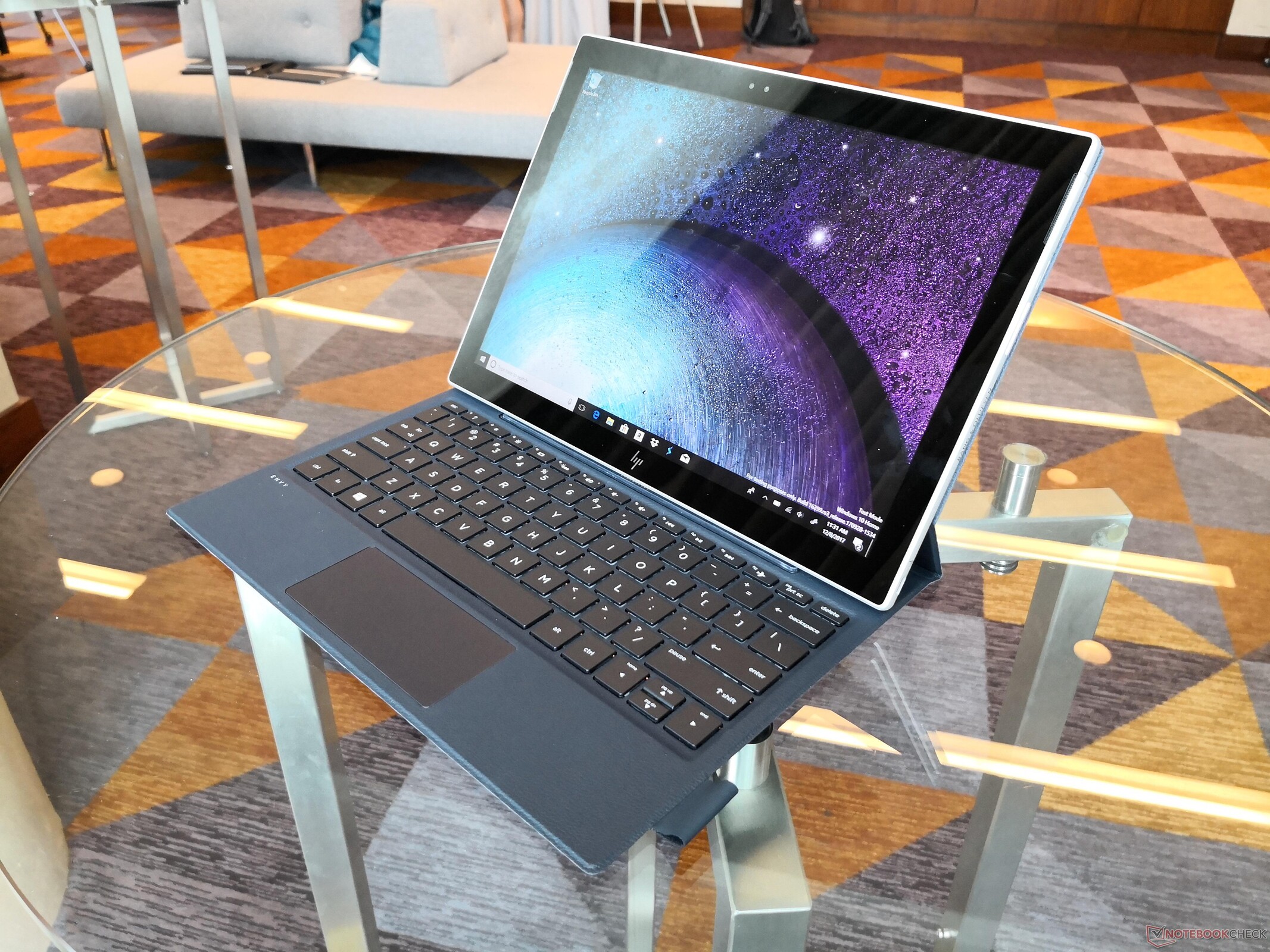 From our short time with the two devices, we can already notice some light creaking when attempting to twist the unit side-to-side and that their respective keyboard stands can be finicky compared to the firm built-in metal kickstand on the Surface Pro, Elite x2, or Lenovo Miix 520. Users may need to be careful not to bump the tablet out of balance as it feels a lot less stable if not on a flat desk. This is perhaps the price to pay for having a stand on the soft keyboard base instead of directly on the metal tablet itself. Of course, we'll reserve our final judgments for a proper review.