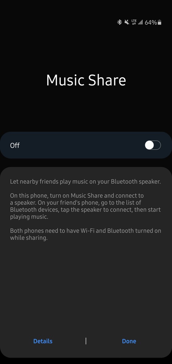 - Music Share now lets you share music with your friends using a Bluetooth audio device.
