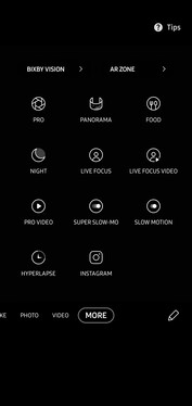 - Various menus, modes, and filters have been added, such as AR Zone, Single take, Pro video, My filters, Selfie tone, timelapse for night time, and a mode for recording videos with the front camera in FHD/UHD at 60 fps.