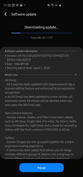 The update weighed in at exactly 1446.89 MB and took about ten minutes to install after downloading. Samsung continues to refuse to implement seamless updates, and that's a shame. In any case, going from One UI 2.0 to One UI 2.1 isn't a major change, and apart from a few features, the differences are mostly subtle.