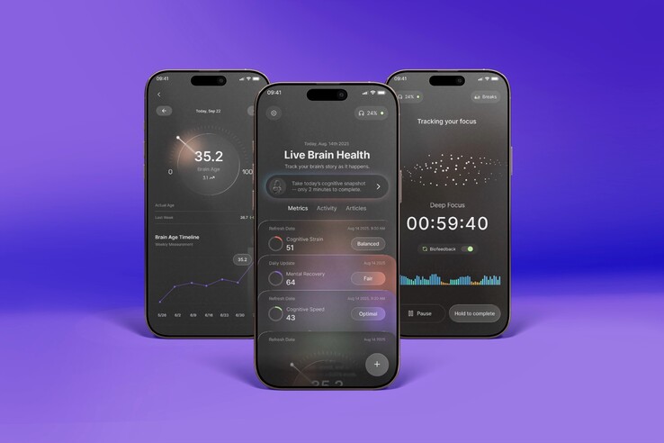 This allows the associated smartphone app to display, among other things, how much brain strain the user is experiencing, how refreshed the brain is in the morning, and when it's a good time for lighter tasks or for intensive mental work. "Brain Age" is designed to show how activities and habits affect cognitive aging. The 12-channel EEG is said to help users achieve an average of 33% more "focus time".
