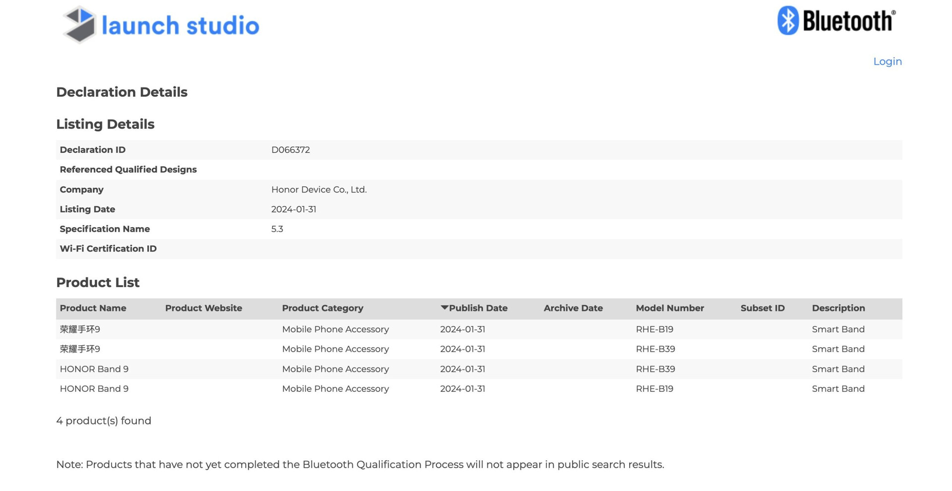Now, a recent Bluetooth Special Interest Group (SIG) certification implies that Honor is working towards offering a Band 7 successor globally. As the screenshot below shows, Honor has certified two variants, RHE-B19 and RHE-B39, albeit with the same retail name. Surprisingly, the company has jumped from Band 7 to Band 9, skipping past arguably one of the most relevant numbers to the success of a new product in Chinese numerology.