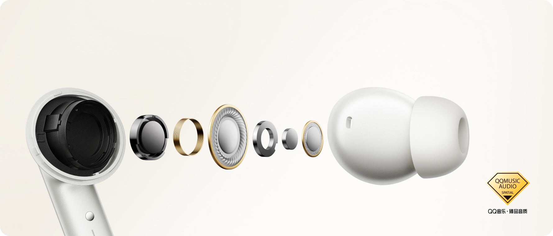 The Honor Earbuds 4 are positioned as high-end earbuds that feature two drivers per ear. Specifically, an 11-millimeter driver is combined with a 6-millimeter driver, which is intended to provide balanced audio quality across the entire frequency range. Both drivers feature titanium coating.
