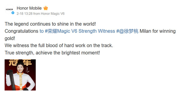 Specifically, aerial skier Xu Mengtao was captured holding the same device during her recent gold medal win. Mengtao has form for using foldable devices publicly too, including Huawei's Mate XTs and older Magic Vs models. Thus, we would not be surprised if Honor had coordinated with Mengtao to tease the Magic V6 publicly before its official launch.