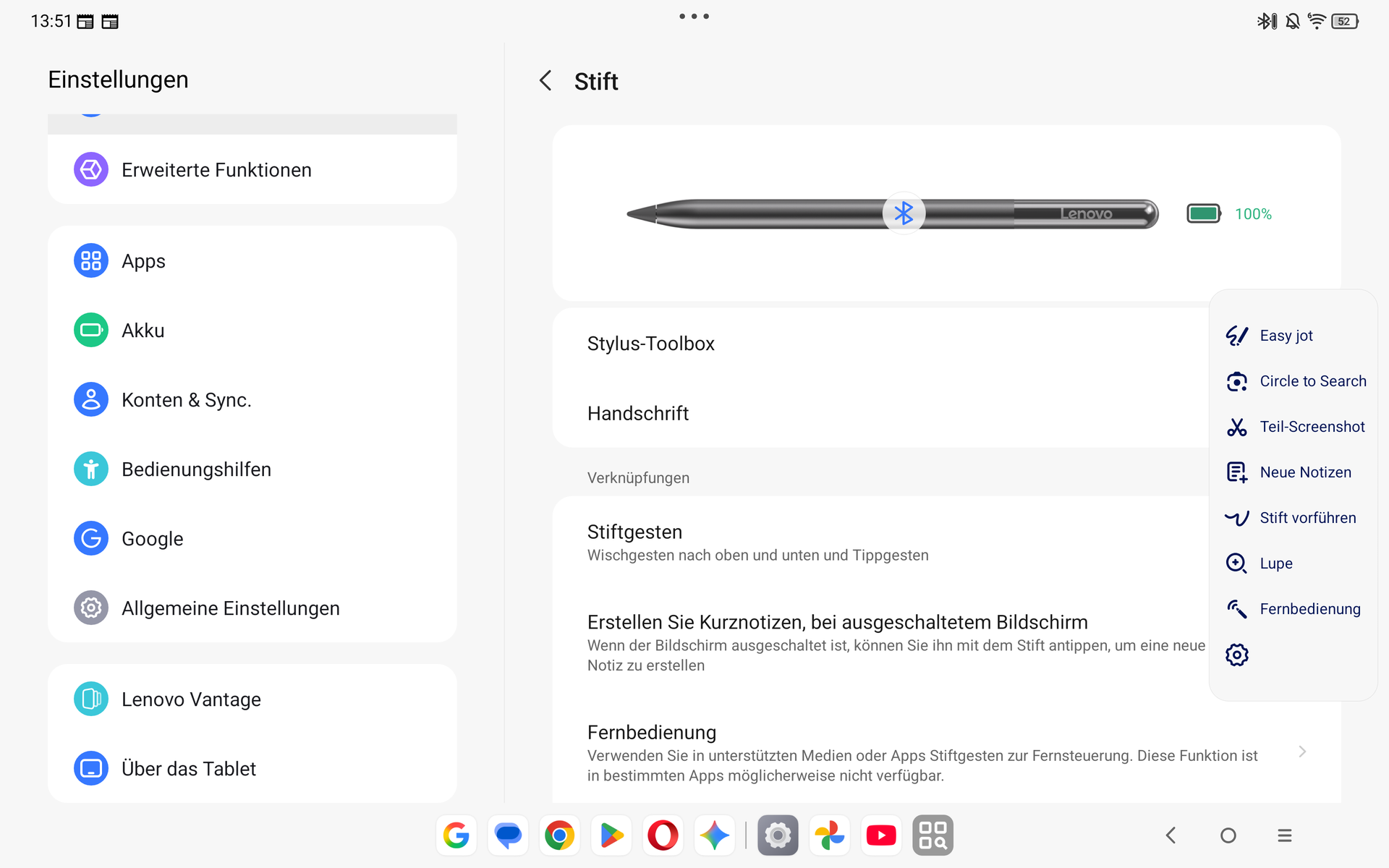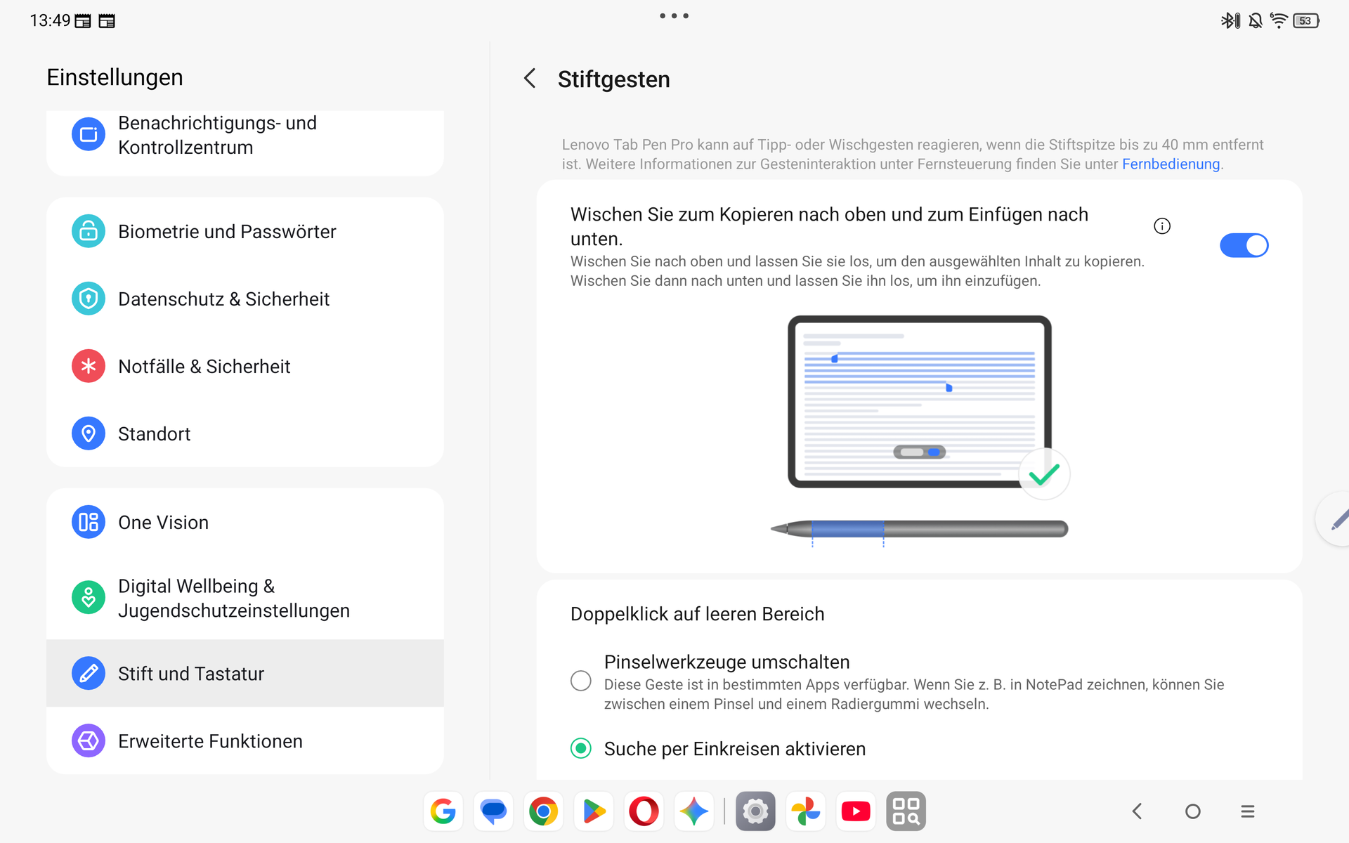 In addition to AI functions such as Circle to Search, the ZUI17 interface also offers many options for using the Lenovo Tab Pen Pro for productivity. With the touch-sensitive area in the front of the pen case, gestures can be used to select the tool bar, for example. This works very reliably in everyday use.