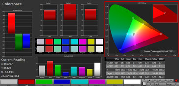 The color reproduction looks very warm even subjectively. The measurements with the photospectrometer in CalMAN also confirm this. The grayscale levels exhibit a visible purplish tint. As usual, the color temperature can be adjusted in the settings .