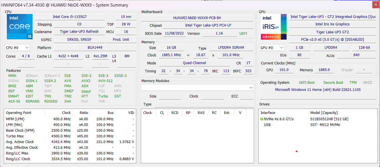 | 85.8 % v7 (old) | 04 / 2023 | Huawei MateBook D 14 2023, 53013PKG i5-1155G7, Iris Xe G7 80EUs | 1.4 kg | 15.9 mm | 14.00" | 1920x1080 | |