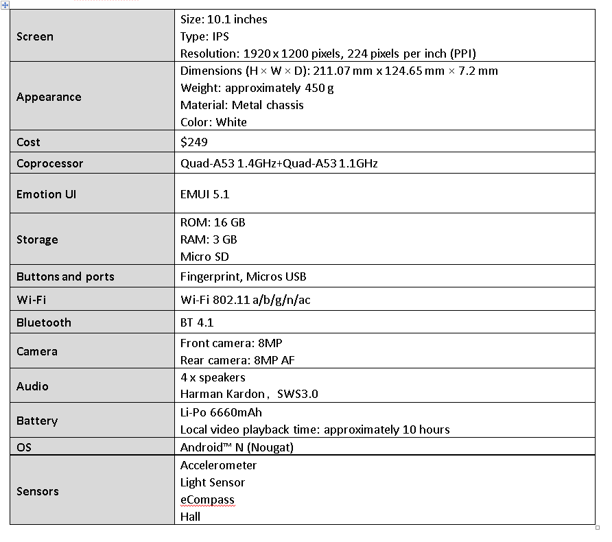 - HUAWEI MediaPad T3 10-inch