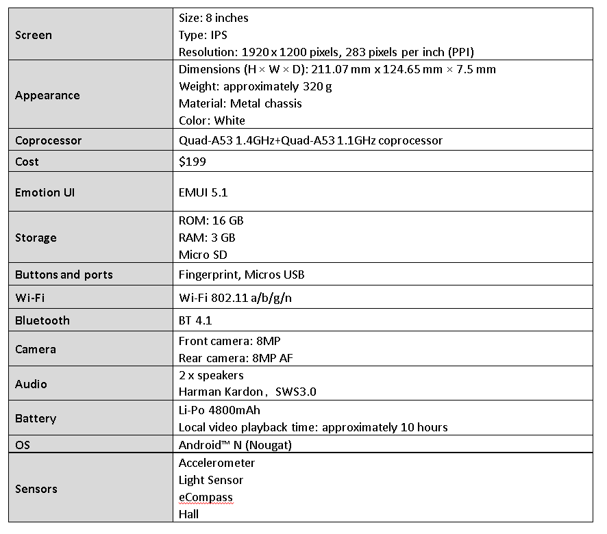- HUAWEI MediaPad T3 8-inch