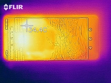 (+) In idle usage, the average temperature for the upper side is 29.6 °C / 85 F, compared to the device average of 32.9 °C / 91 F.