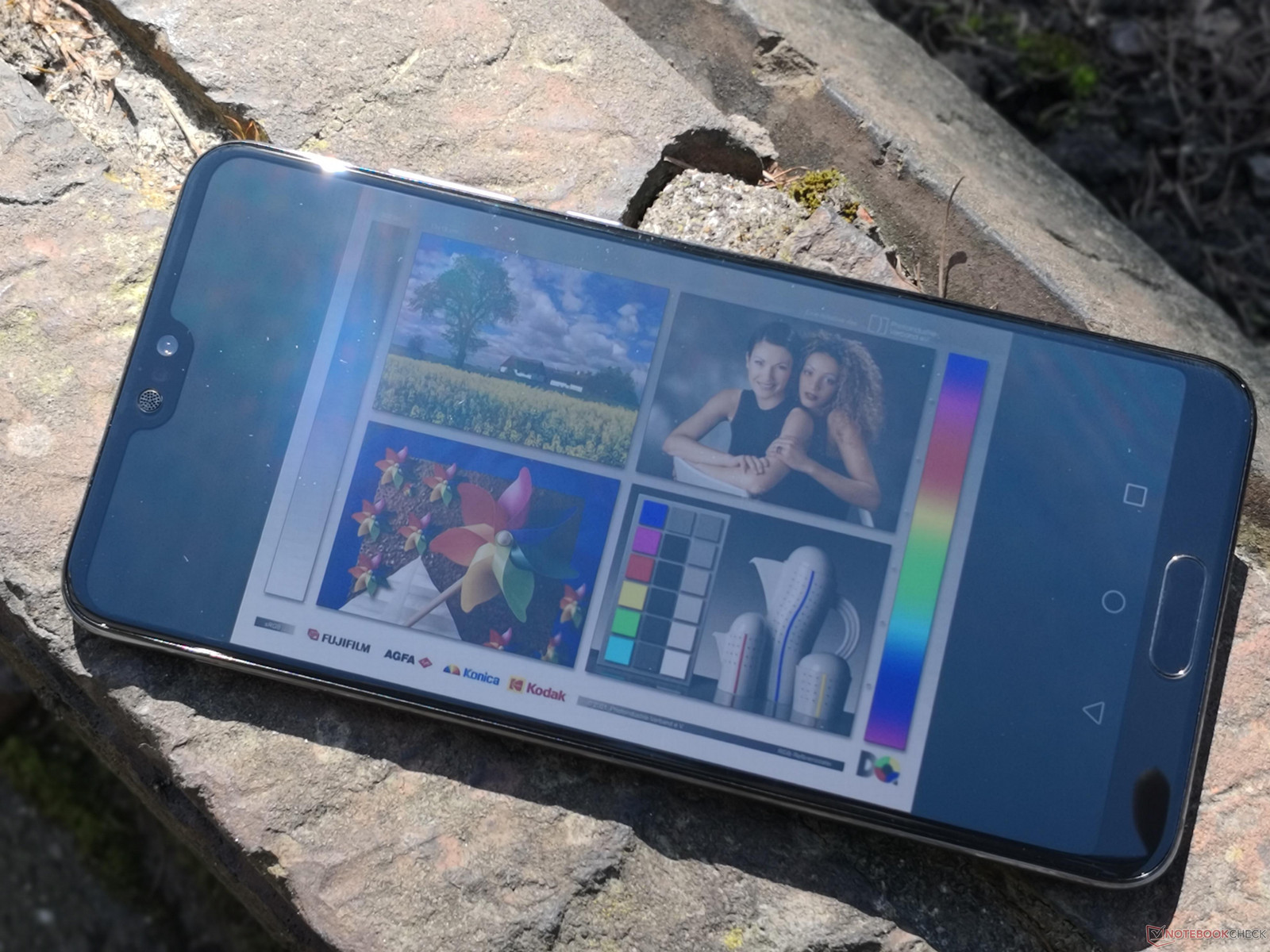 The P20 Pro benefits from its high contrast and brightness when using the device outdoors. Content remains readable even in direct sunlight. We noticed that the display strongly reflects light at acute viewing angles, although this would not be an issue when holding the device.