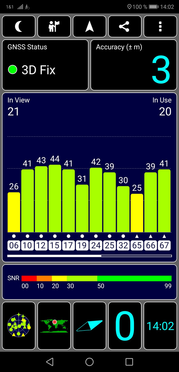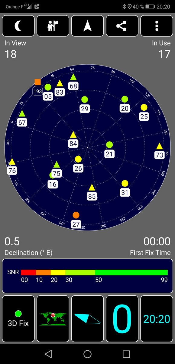 The P20 Pro supports GPS, GLONASS, BeiDou and QZSS, and is accurate to three meters (~10 ft) outside. The P20 Pro is even accurate when next to a basement window, settling after a few moments to an accuracy of six meters (~20 ft). The P20 Pro lacks the barometer that the Mate 10 Pro has.