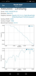 We tested the extent to which the P20 Pro can maintain its performance under load by using GFXBench battery test, which records the battery level and framerates while running the benchmark for thirty times in a loop. Interestingly, performance improves during the test rather than deteriorating, with the Neural Network Processing Unit (NPU) initially allowing the P20 Pro to run at less than full power. Performance is more even in the Manhattan benchmark, with the P20 Pro never dropping below 1,200 FPS. Most of our comparison devices fall below the 1,000 FPS threshold at some point during the benchmark. For example, while the Galaxy S9 Plus is nominally faster than the P20 Pro, its lowest performance during the benchmark is at 862 FPS. Only the iPhone X is consistently faster than the P20 Pro, achieving at least 1,500 FPS.